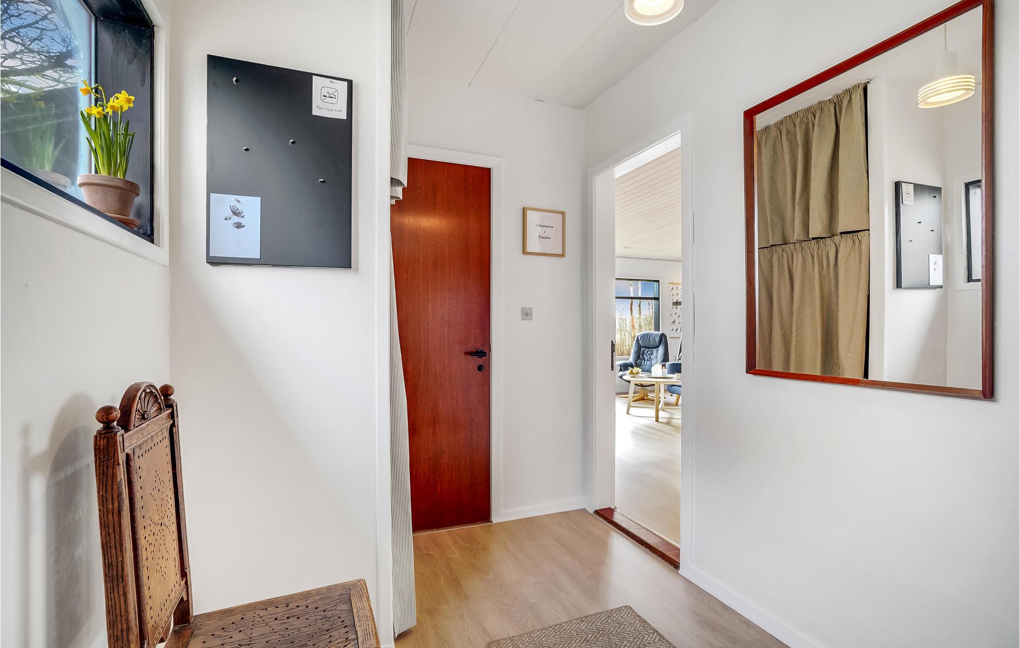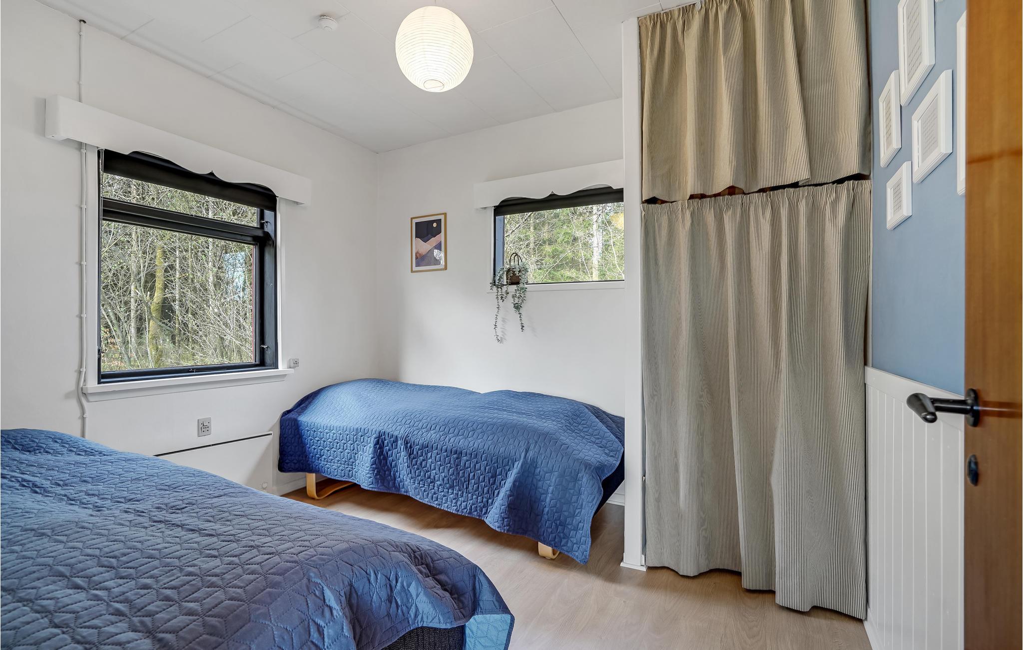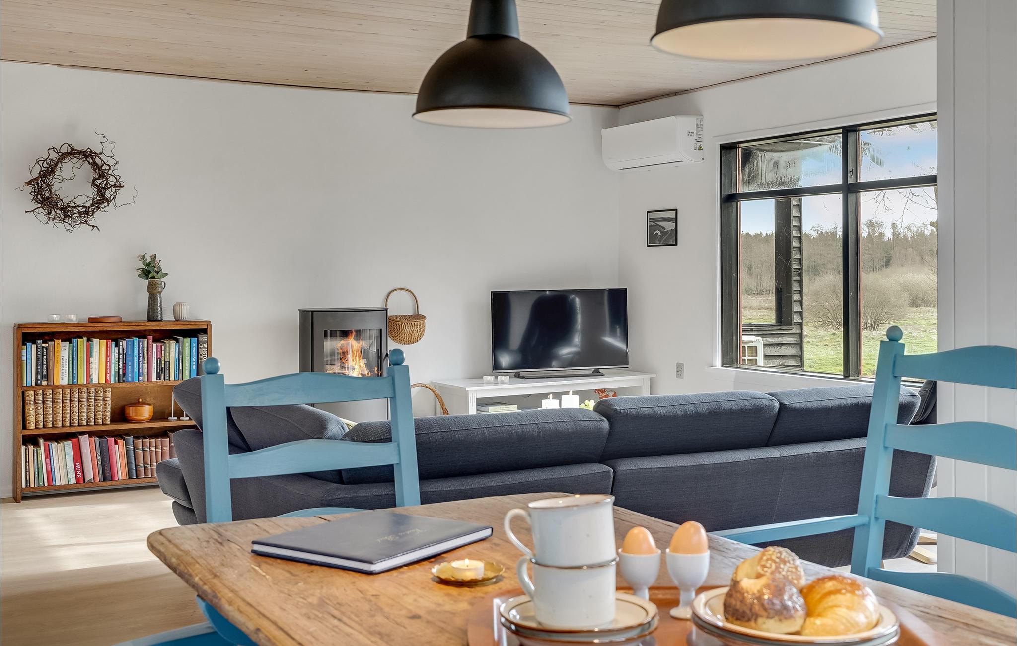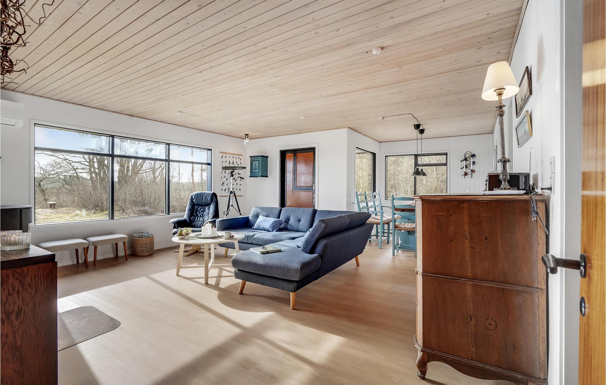 I kommer til at bo ud til en lille skov, hvor Storeåen snor sig smukt lige foran huset. Glæd jer til nogle fredfyldte feriedage, hvor boligens store vinduer giver jer direkte kig ud i de grønne omgivelser. Indretningen er harmonisk og moderne, så her har I gode rammer til at slappe af.