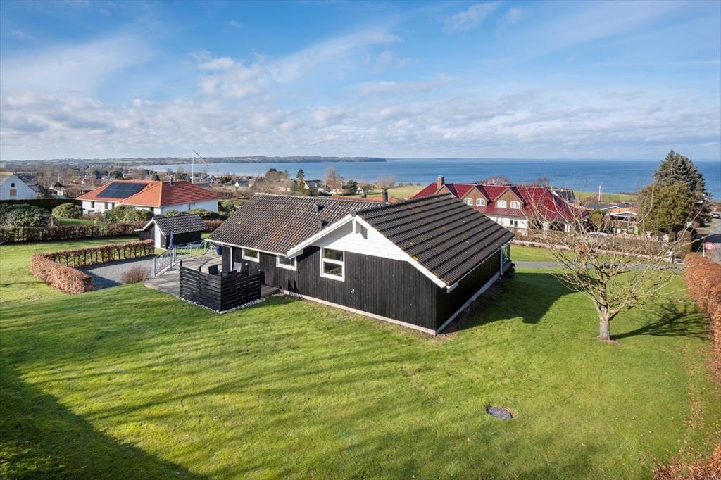 Flot og velholdt sommerhus, beliggende i det attraktive sommerhusområde Båring Vig, blot 9 km fra handels- og havnebyen Middelfart. Huset indeholder en entré, 3 soveværelser med hver 2 sovepladser, et godt badeværelse med vaskemaskine og gulvvarme samt en stor kombineret spise- og opholdsstue med brændeovn og panoramaudsigt over havet. Stuen ligger i åben forbindelse med det veludstyrede køkken og der er udgang til en stor terrasse, ligeledes med udsigt til vandet. Et rigtig dejligt hus, som er det perfekte udgangspunkt for afslapning og udflugter – både på Fyn og f.eks. til Legoland eller Givskud Zoo.