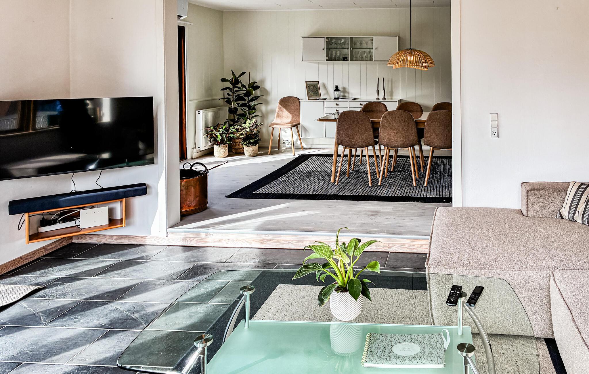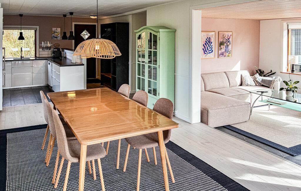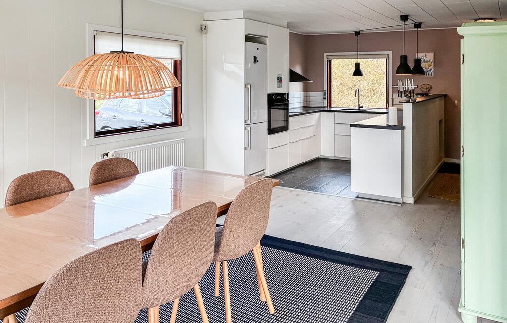 Jeres charmerende sommerhus ved Båring Strand byder på masser af plads til hele familien og indbyder til afslapning med sin lyse, elegante indretning. Start dagen med morgenmad i den åbne stue- og spisestue, hvor de store vinduer lukker masser af dagslys ind. Sæt jer ved spisebordet, og planlæg dagens aktiviteter, eller slap af i den komfortable sofa. Det moderne køkken har alt, hvad I behøver for at tilberede lækre måltider sammen. Når vejret er godt, kan I nyde maden på den hyggelige terrasse, som tilbyder både solrige og skyggefulde pladser. I den rolige, lukkede have kan I slappe af, mens jeres børn leger på plænen.