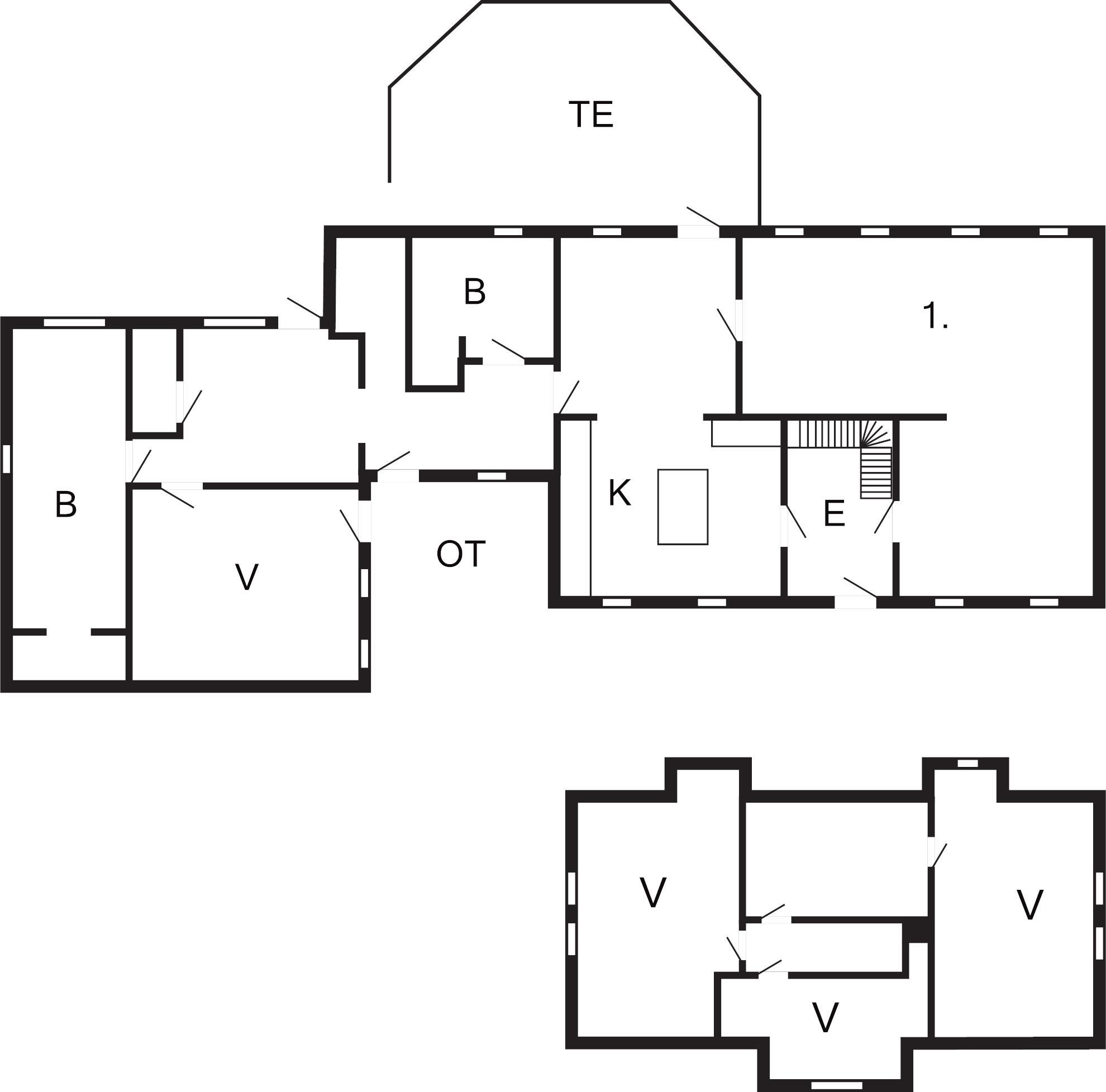 På 1. sal finder I de 3 øvrige soverum med hvert sit eget udtryk. I det bagerste soverum, er der tre sovepladser. 1 * 2 dobbelt senge 1* 1 dobbelt seng, 1*1, enkelt soveplads i gangarealet mellem soveværelserne lille opholdsrum med tv med Apple tv og bræt- og puslespil af forskellig art, til hjernebryderi og sjov.