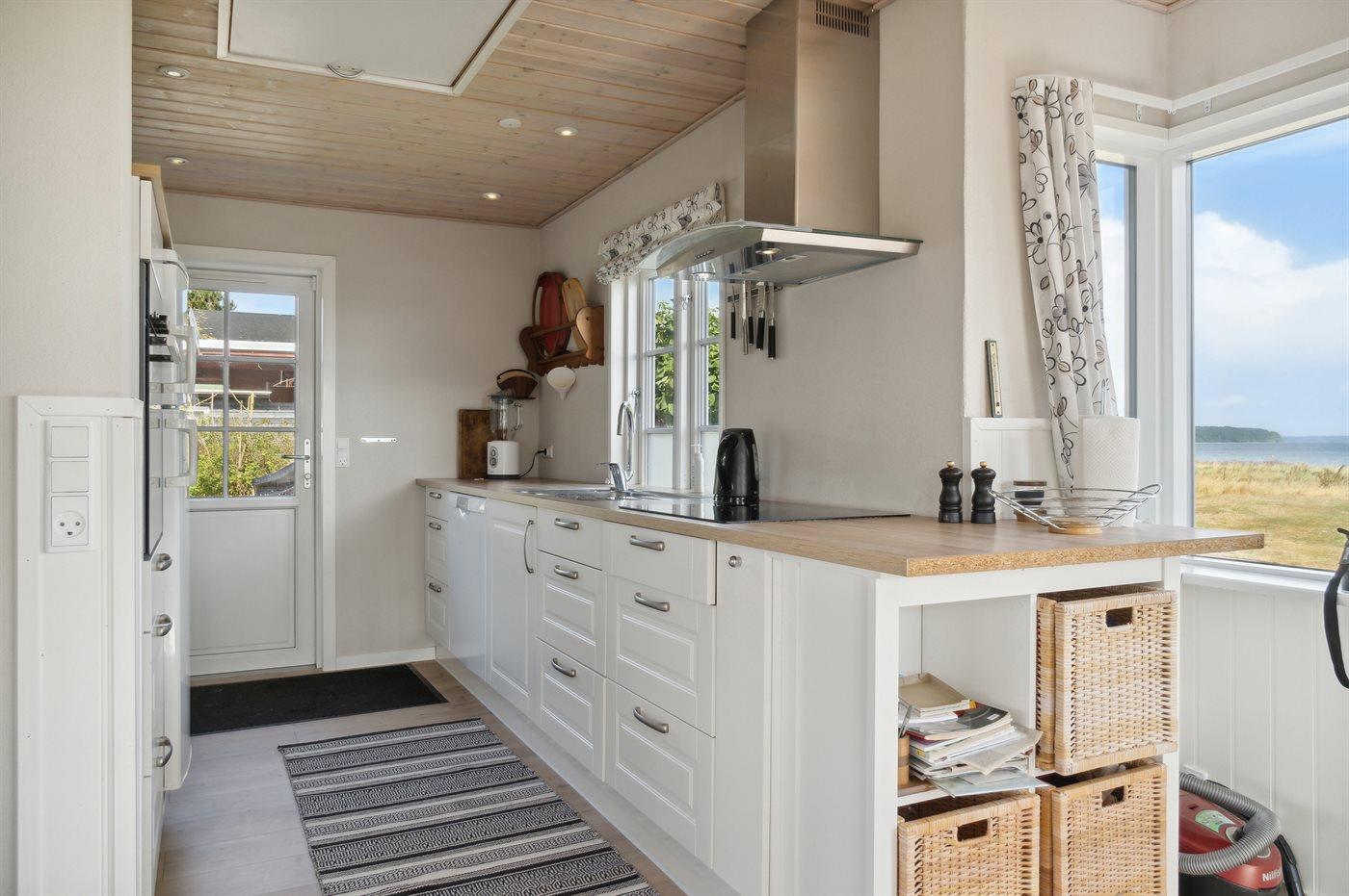 Køkkenet er udstyret med 1 køleskab. Der er 4 induktionskogeplader, varmluftovn, mikrobølgeovn samt opvaskemaskine.