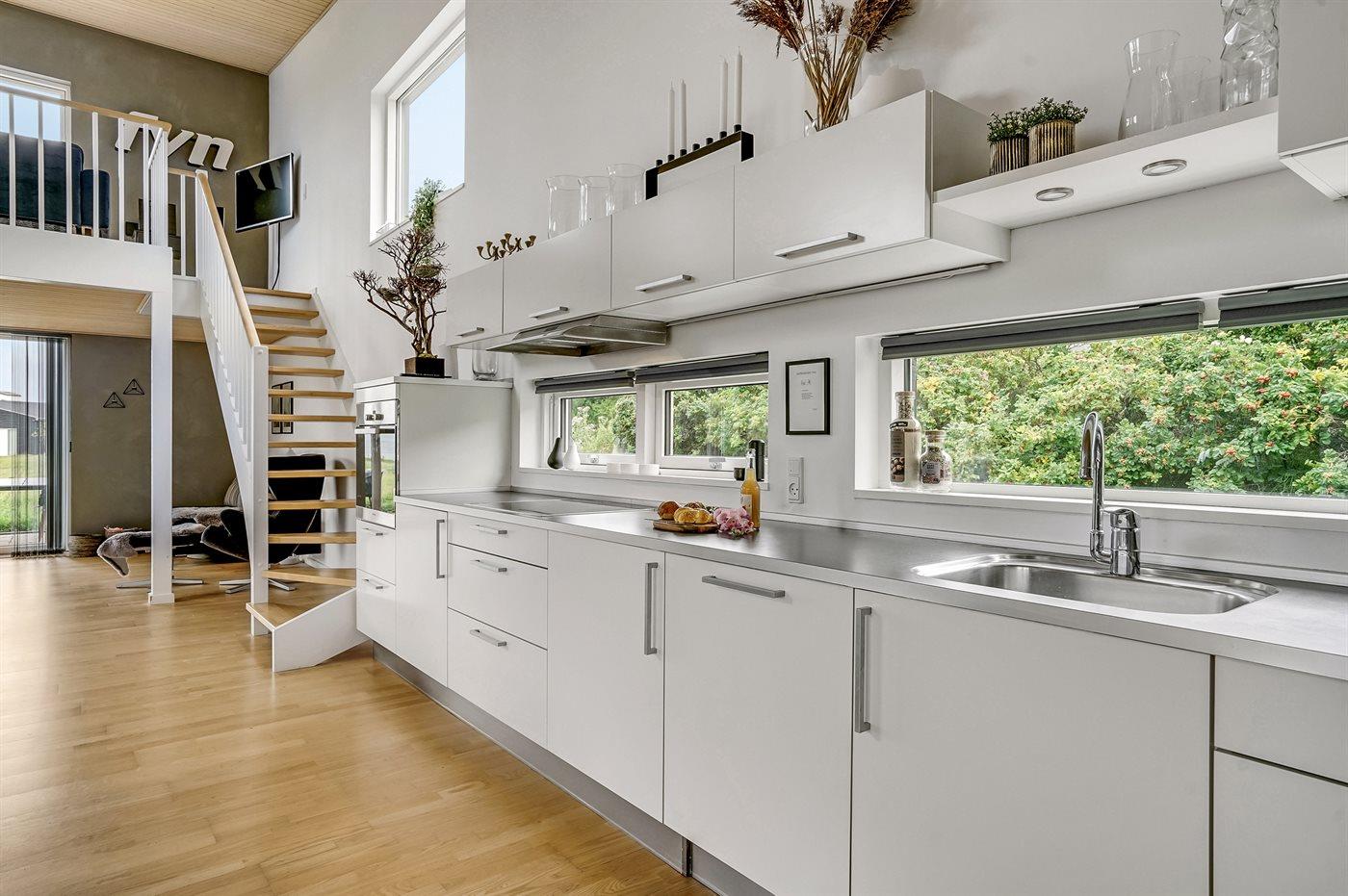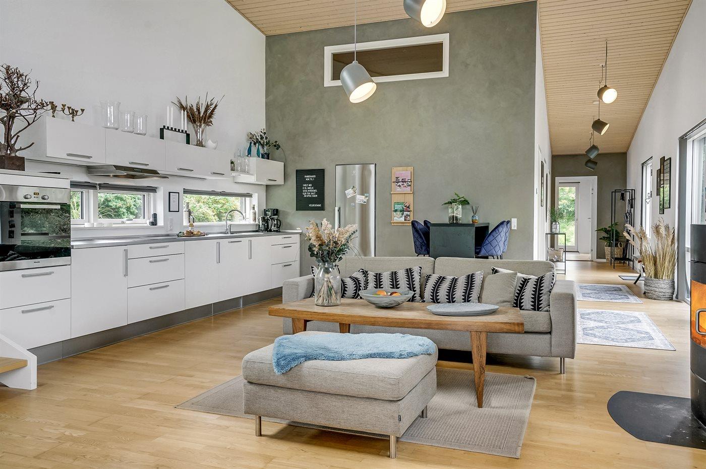Køkkenet er udstyret med 1 køleskab. Der er 4 induktionskogeplader, varmluftovn, mikrobølgeovn samt opvaskemaskine.