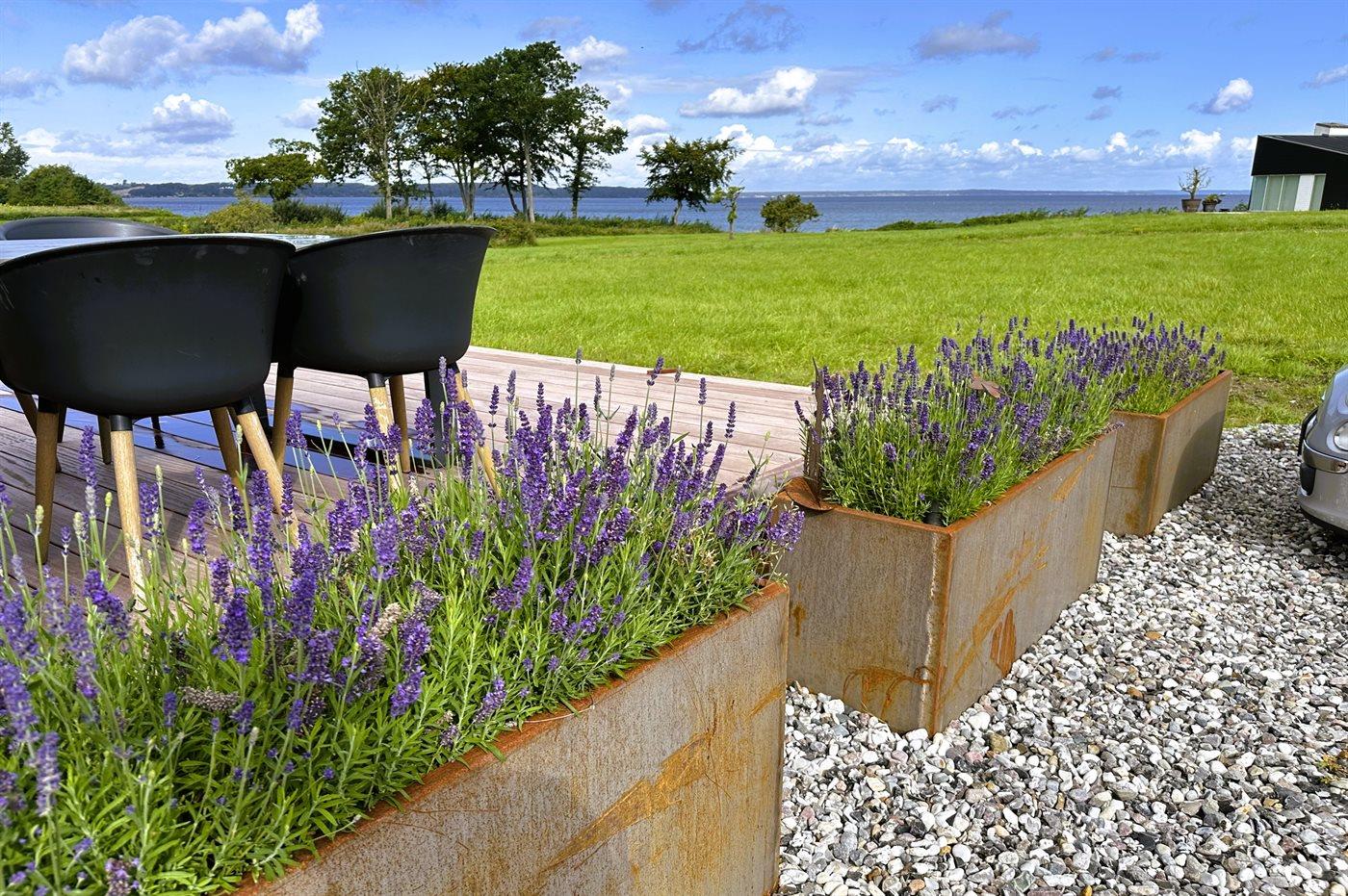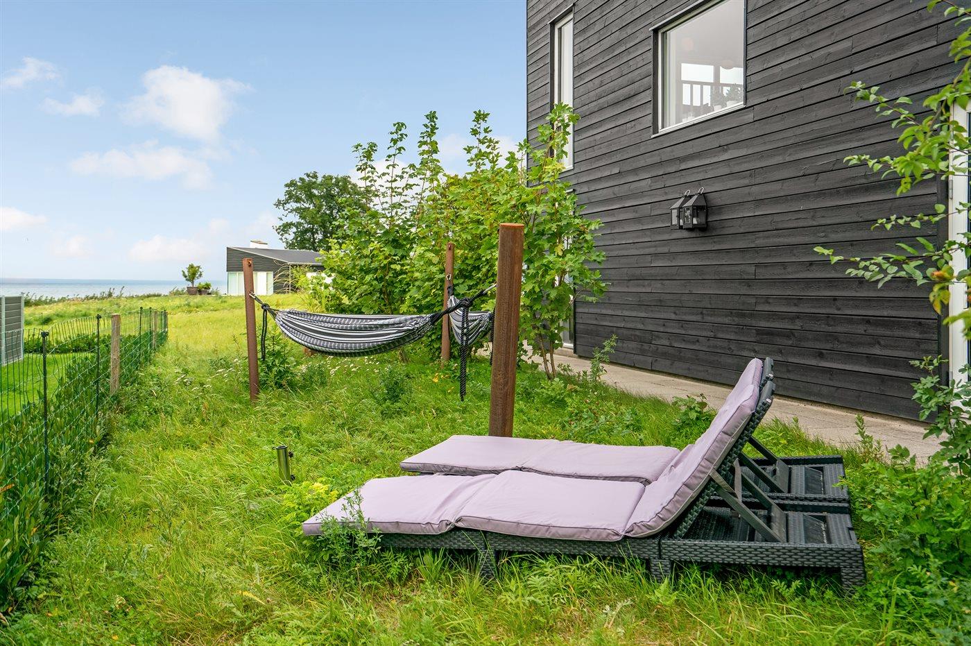Ferieboligen er beliggende på en 707 m² stor havegrund. Der er 100 m til havet. Nærmeste forretning er beliggende i en afstand af 4800 m. Der er en golfbane i en afstand af 10000 m. Til ferieboligen hører 80 m² terrasseareal. Udgang til altan. Der er redskabsrum. Bålsted. Der er mulighed for at tilberede maden udendørs i udekøkkenet. Grill til rådighed. Der er installeret stik til opladning af elbil. Parkering ved ferieboligen.