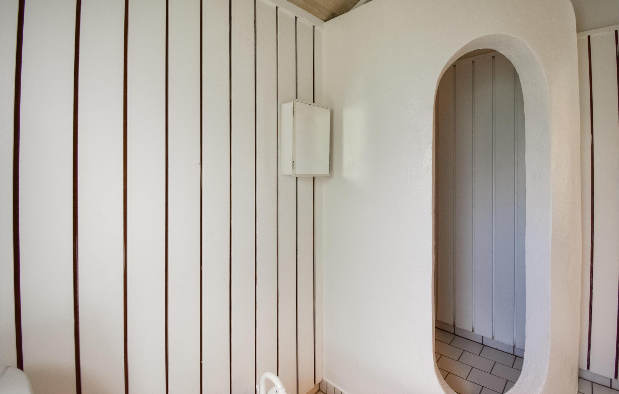Sommerhuset byder på et stort badeværelse med bruseniche, 3 gode værelse, hvoraf 1 er med dobbelt seng.