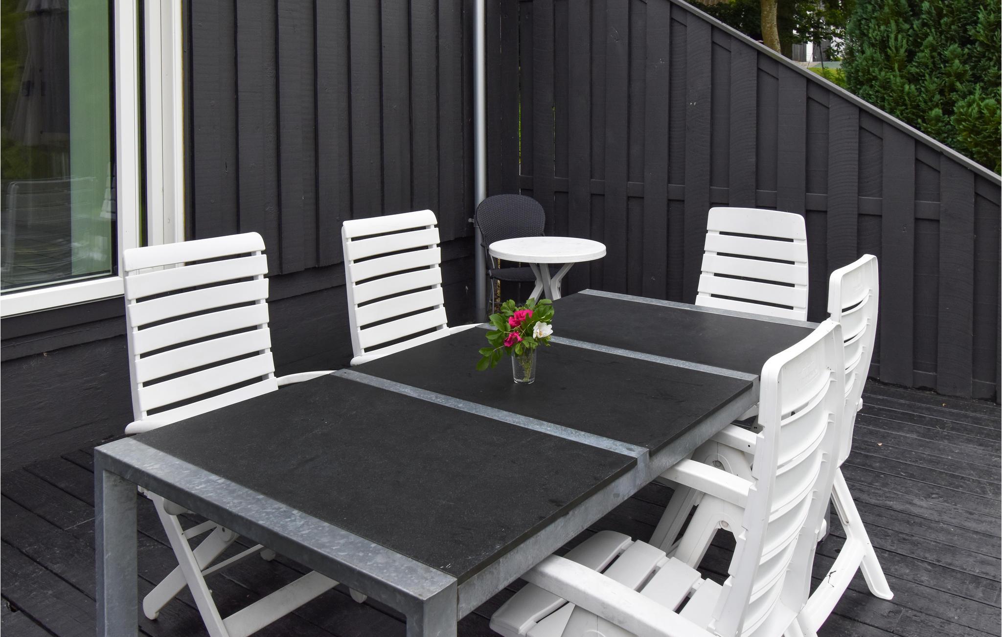 Det første man bliver mødt af, når man ankommer til dette skønne feriehus er den østvendte terrasse, hvor solens første stråler rammer. Den vestvendte terrasse sørger for, at resten af solen kan nydes der.