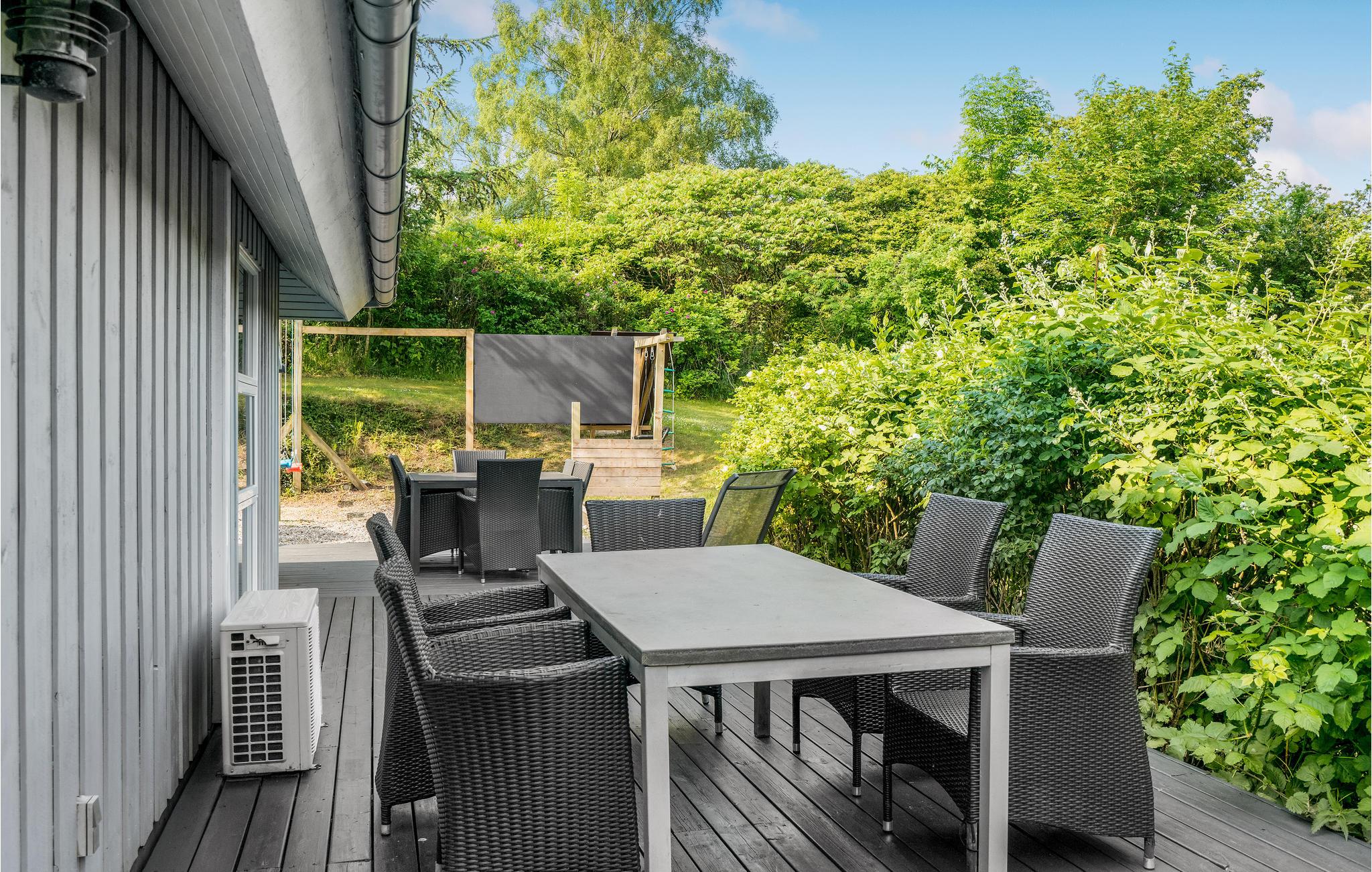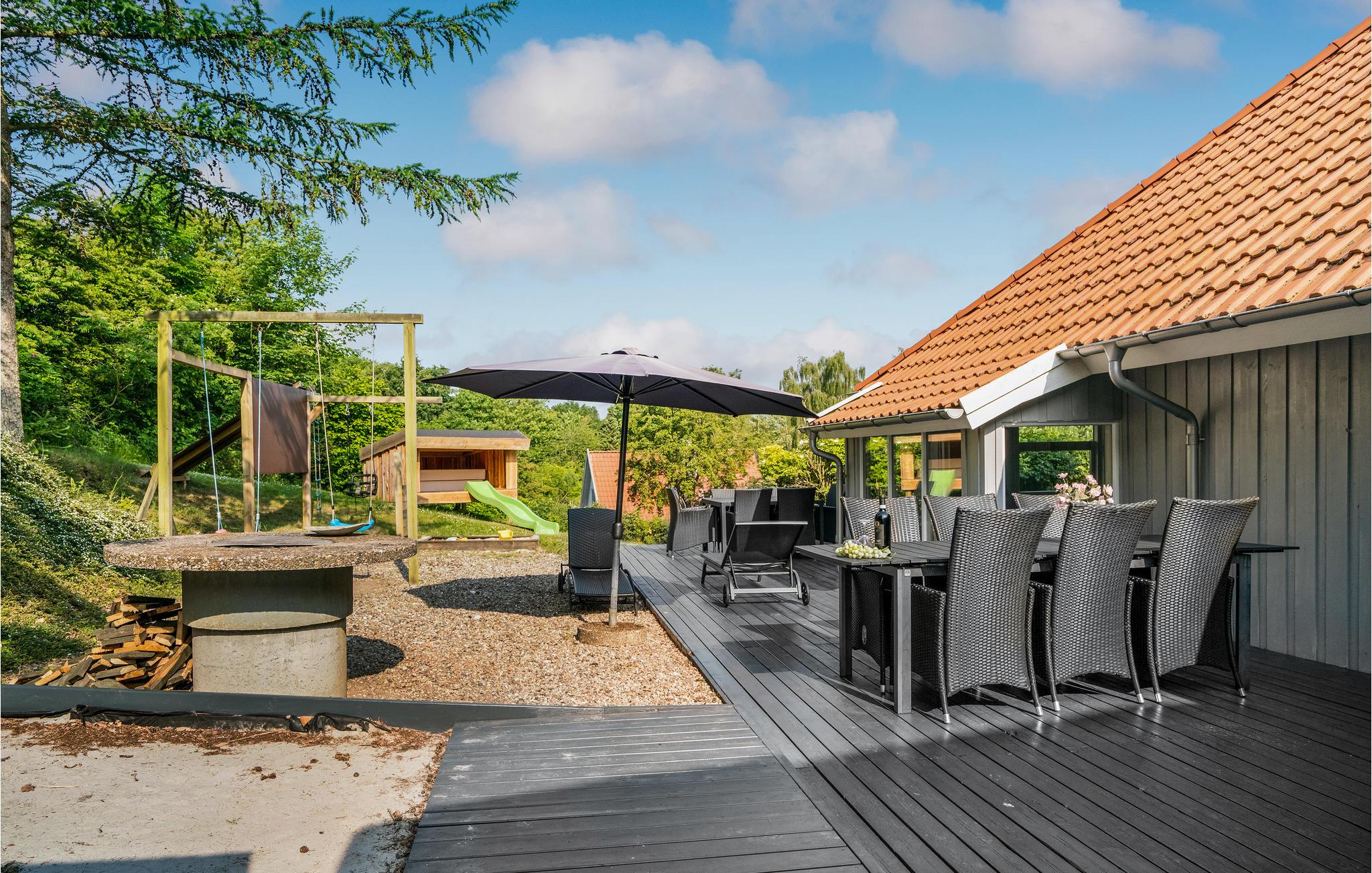 Et skønt feriehus med swimmingpool og spabad og plads til hele familiens udfoldelser. Huset er godt indrettet med fem soverum og to badeværelser, hvoraf et ligger i forbindelse med poolområdet. Fra soveafdelingen er der et par trin ned til husets øvrige rum. Køkkenet ligger i åben forbindelse til spisestuen og den store opholdsstue med brændeovn, en hyggelig karnap og udgang til terrassen. Fra stuen kan I se ind i poolområdet og følge med i de badendes leg. Poolrummet indeholder foruden poolen også et 5-personers spabad samt saunaen. Fra huset er der kort afstand til den børnevenlige sandstrand. Båring Sommerland har en fin og børnevenlig sandstrand, og fra det højtbeliggende område kan I nyde en betagende udsigt over havet over mod Jylland. På Fyn ligger mange slotte og herregårde, som bestemt er et besøg værd. F.eks. Egeskov Slot med bl.a. Tree Top Walking, museer og smukke haver.