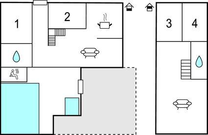 Badeværelse 9m2 (nr. 1) - WC. Varmt og koldt vand. Bruser
