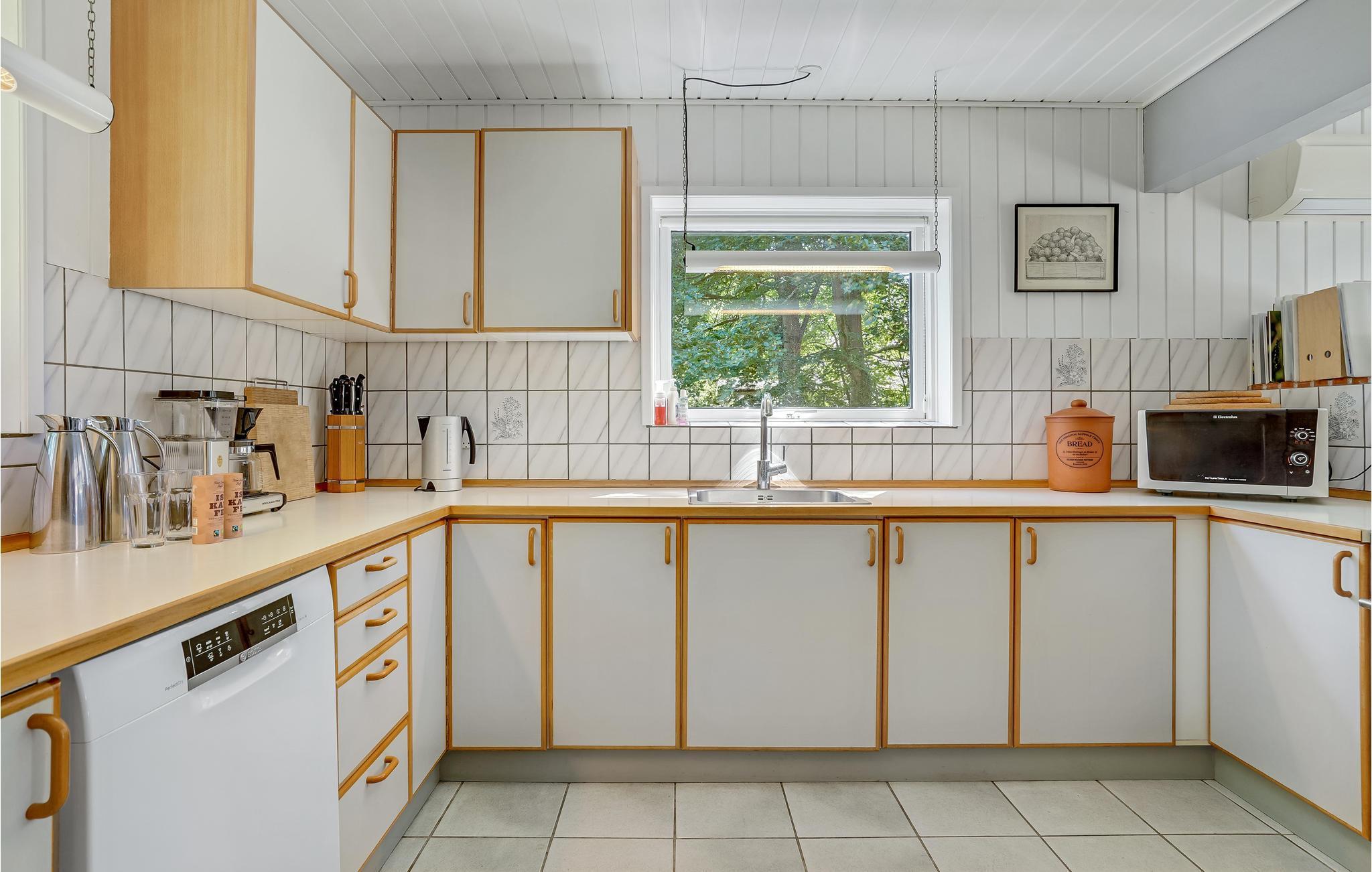 Et skønt feriehus i to etager med swimmingpool, spabad og suana. Feriehuset er godt indrettet med to soverum i stueetagen og yderligere to på 1. salen samt badeværelser på begge etager. Et dejligt køkken med spiseplads og udgang til en ugenert terrasse. Endvidere en hyggelig sofagruppe og brændeovn. På 1. salen er der yderligere en stor opholdsstue, hvorfra der er udsigt til vandet. Huset ligger på en bakketop, som nås via trapper på begge sider af huset. Grunden er en stor naturgrund, delvist omgivet af høj bevoksning og med kort afstand til stranden. Båring Strand er en fin, børnevenlig sandstrand med badebro.