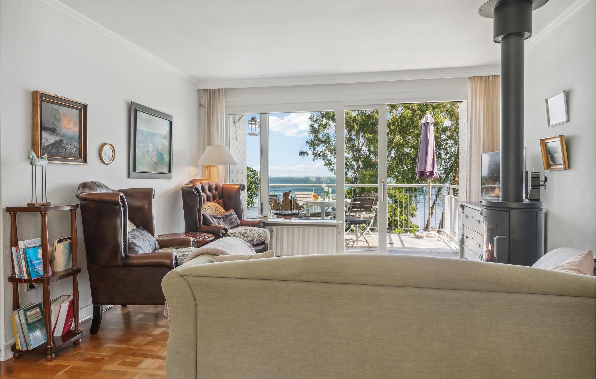 Velkommen til denne komfortable lejlighed, som venter på jer i første række til havet. Den hjemlige bolig vil danne rammen om jeres pause fra hverdagens trummerum på hyggeligste vis. Man mærker med det samme, at rummene er indrettet og dekoreret med kærlighed. Nyd havets skønhed, så snart I vågner, og når I kommer hjem fra stranden eller en spændende udflugt. Lav noget lækkert i køkkenet sammen, sæt jer godt til rette ved sprossevinduerne og dyst i eftermiddagens kortspil. På kølige dage spreder brændeovnen varme og hygge, og på de varme dage kan I rykke morgenmaden udenfor på den fælles balkon. Nogle få skridt fører jer til klippekysten, som indbyder til en forfriskende dukkert i havet.