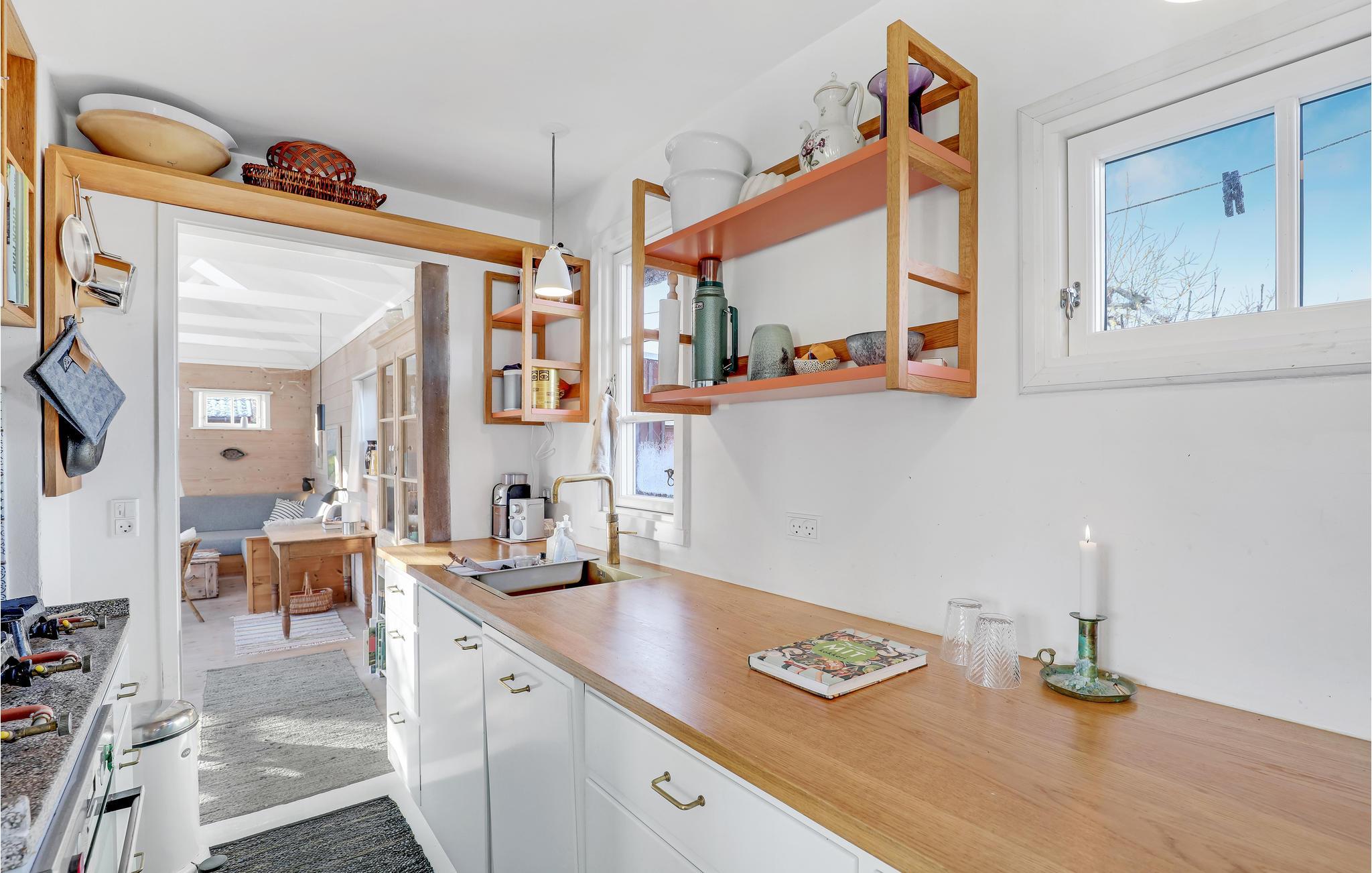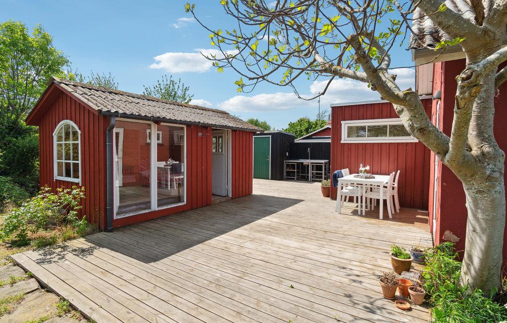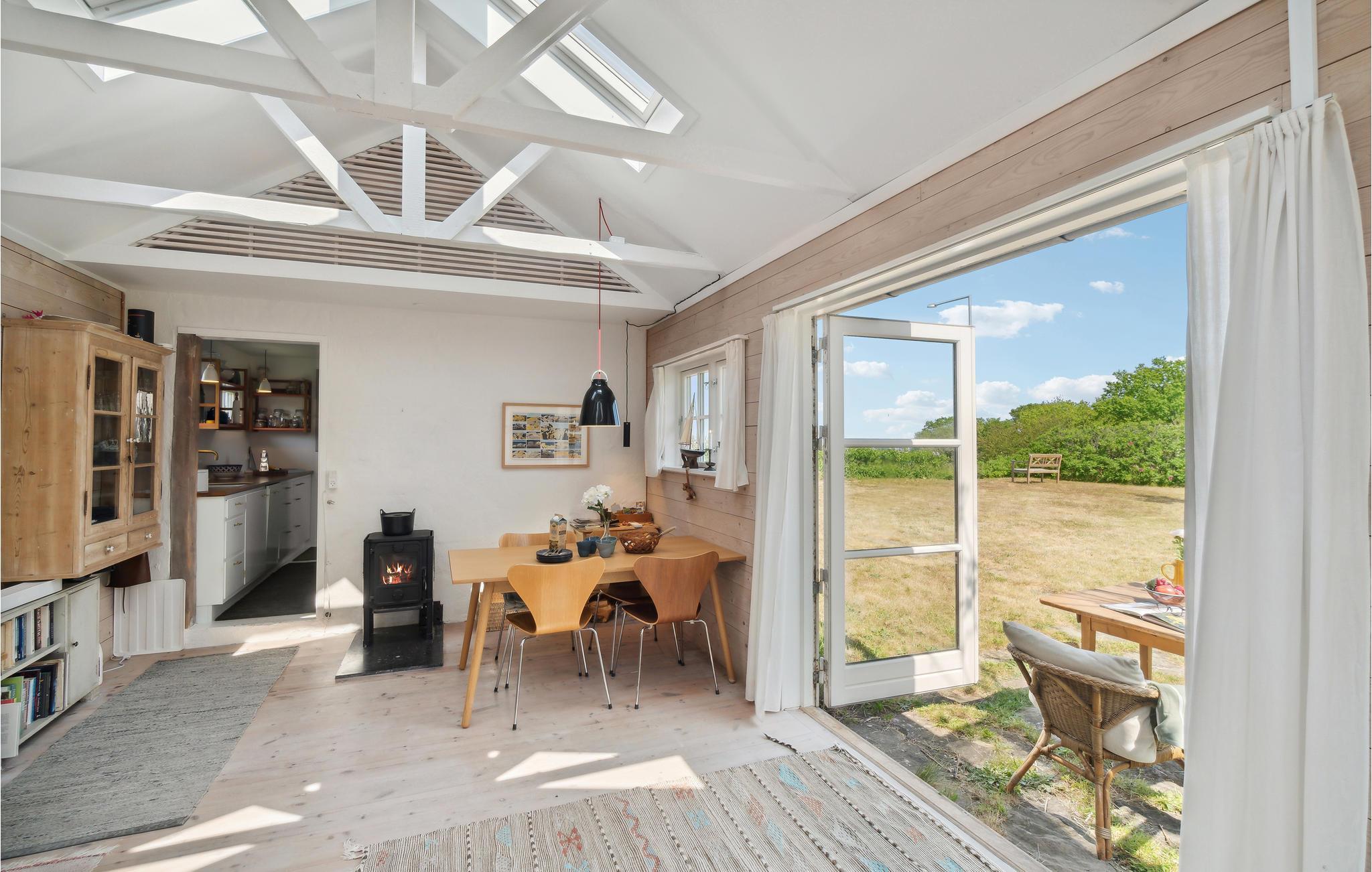 Det skønne sommerhus har en hovedbygning og to hyggelige udhuse, hvor I kan føle jer hjemme med jeres familie eller venner. En stor træterrasse forbinder hovedhuset med de to tilstødende udhuse, så I kan tilbringe jeres ferie sammen, mens I stadig nyder jeres privatliv. Fra hovedhuset har I en smuk havudsigt og kan spise jeres yndlingsretter sammen i den lyse stue eller slappe af i sofaen. Men bliv ikke bare i huset, I kan også nyde den smukke ejendom med mange hyggekroge. Dels er der udekøkken og grill til fælles middage på milde sommeraftener. Efter en forfriskende dukkert i havet kan I skylle jer under den udendørs bruser. En trampolin og andre legeredskaber inviterer jeres børn til at lege og boltre sig i haven.