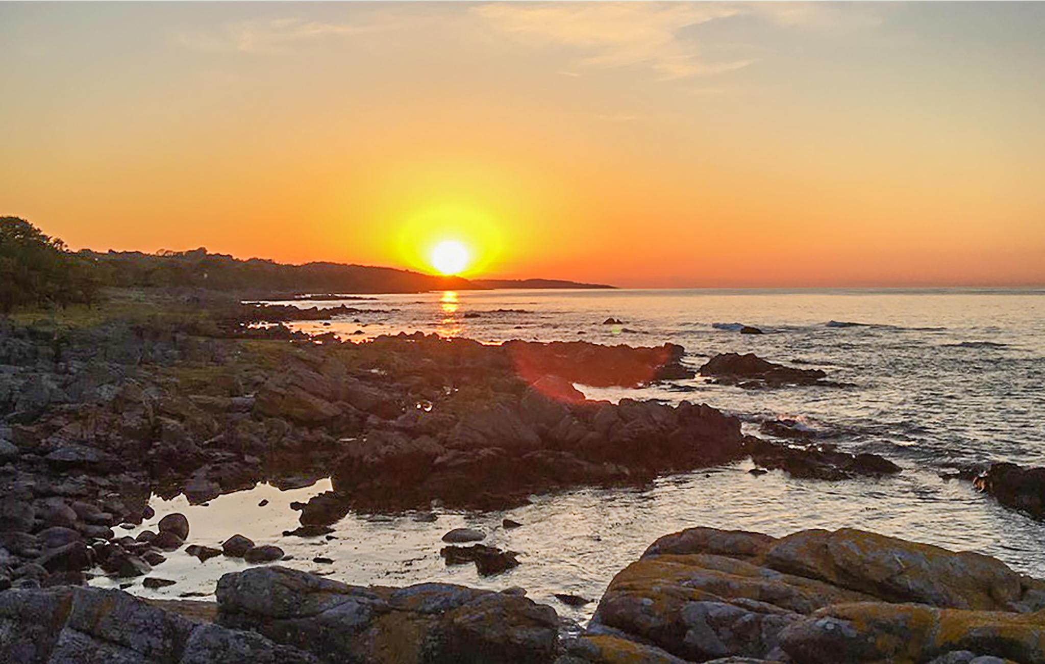 Charmerende rødt sommerhus med enestående havudsigt over klipperne.