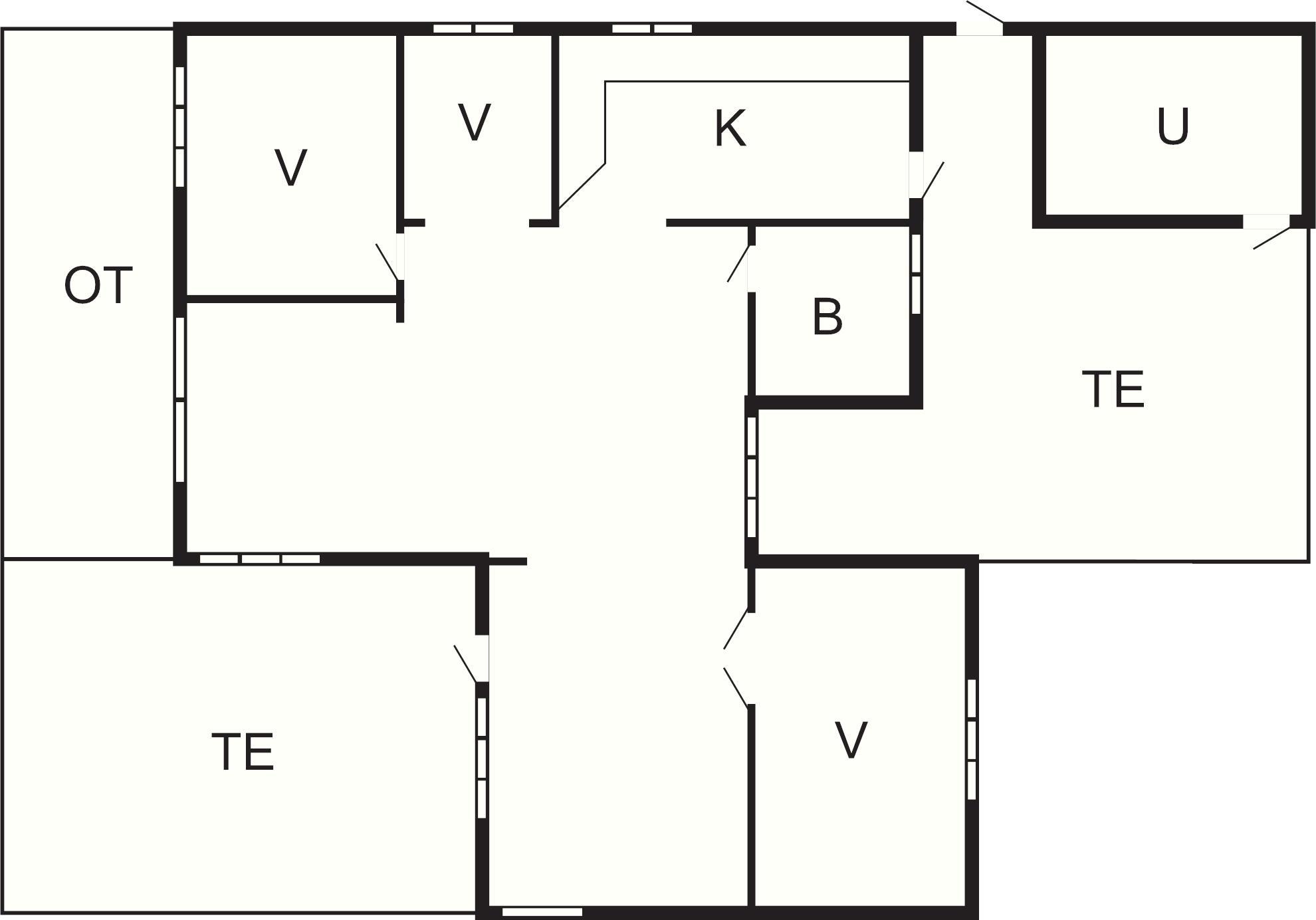 3 Soveværelser: (1DS)+(1DS+1K)+(2S), barneseng
