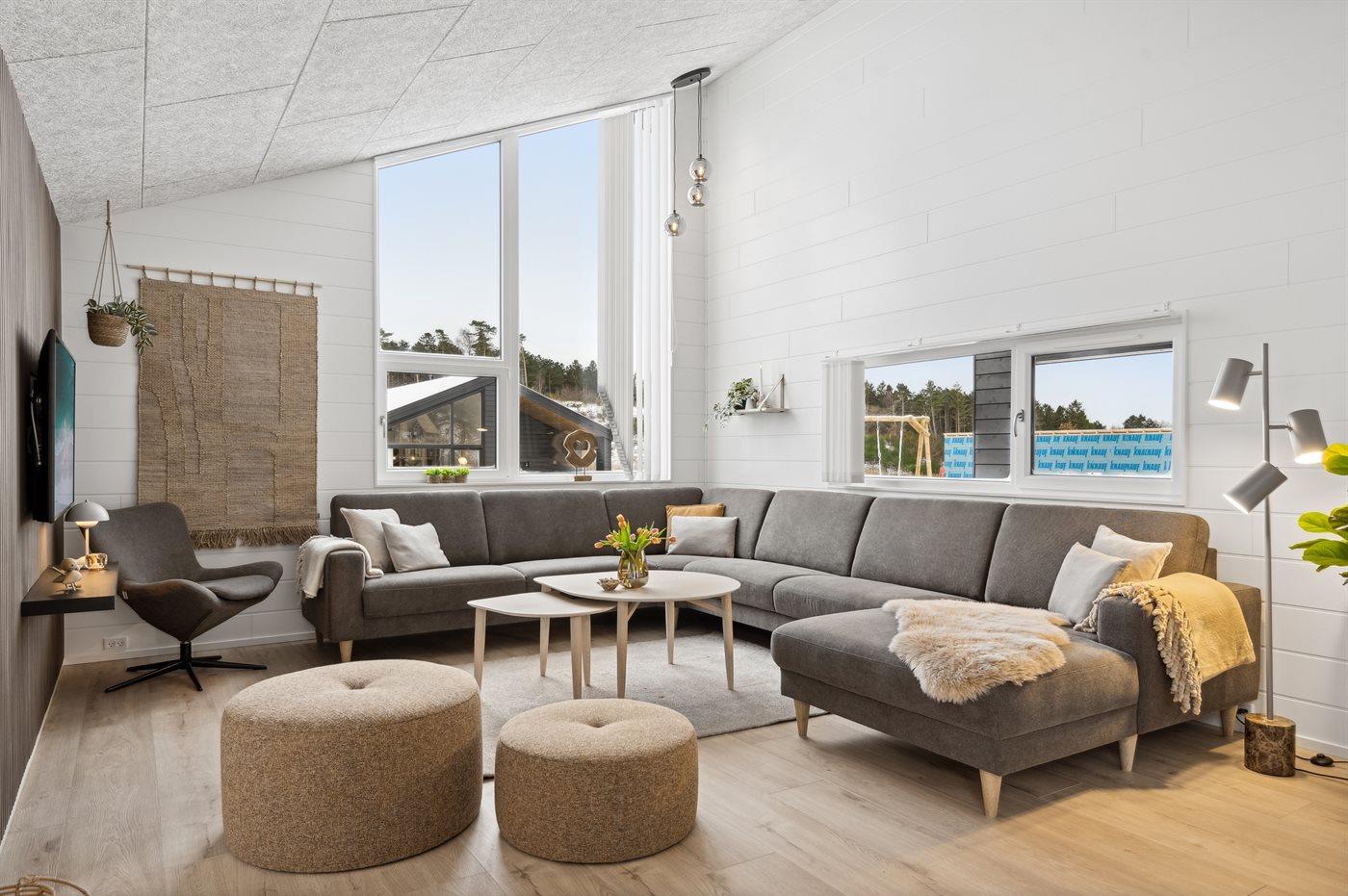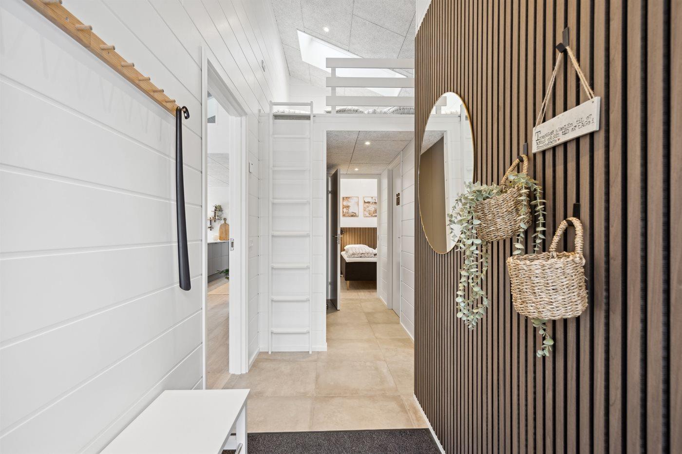 Dette helt nye sommerhus af høj kvalitet præsenterer en velgennemtænkt grundplan, der er ideel til familiens ferie. Bygget i 2024 af holdbare materialer, står dette hus klar til at byde feriegæster velkommen. Med en grundplan, der omfatter fire længer, der alle er forbundet og omslutter en indre gårdhave med udendørs spabad, tilbydes der ro og afslapning uden forstyrrelser.