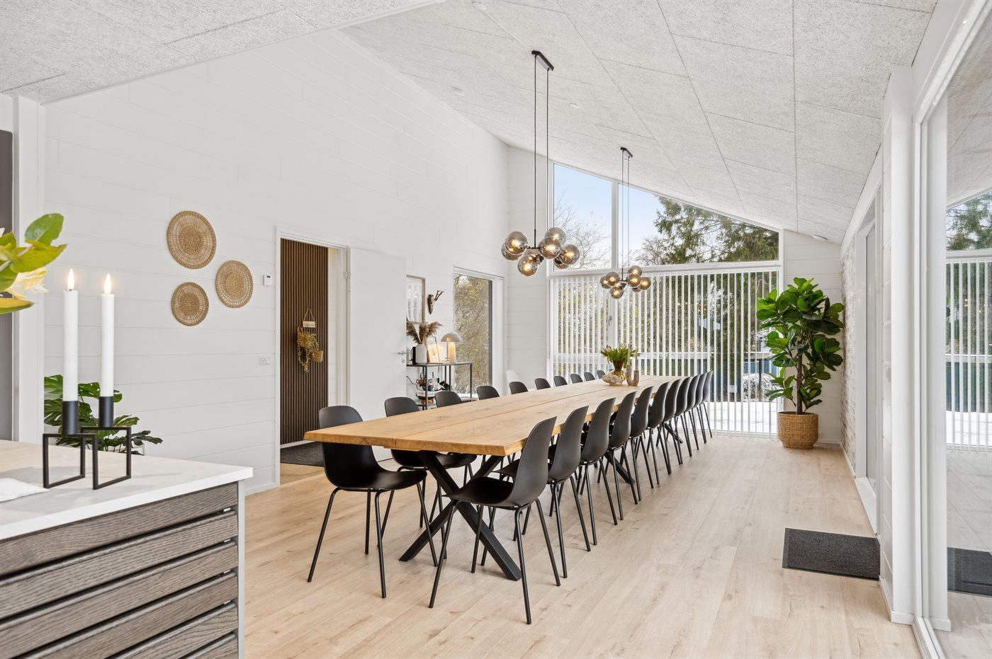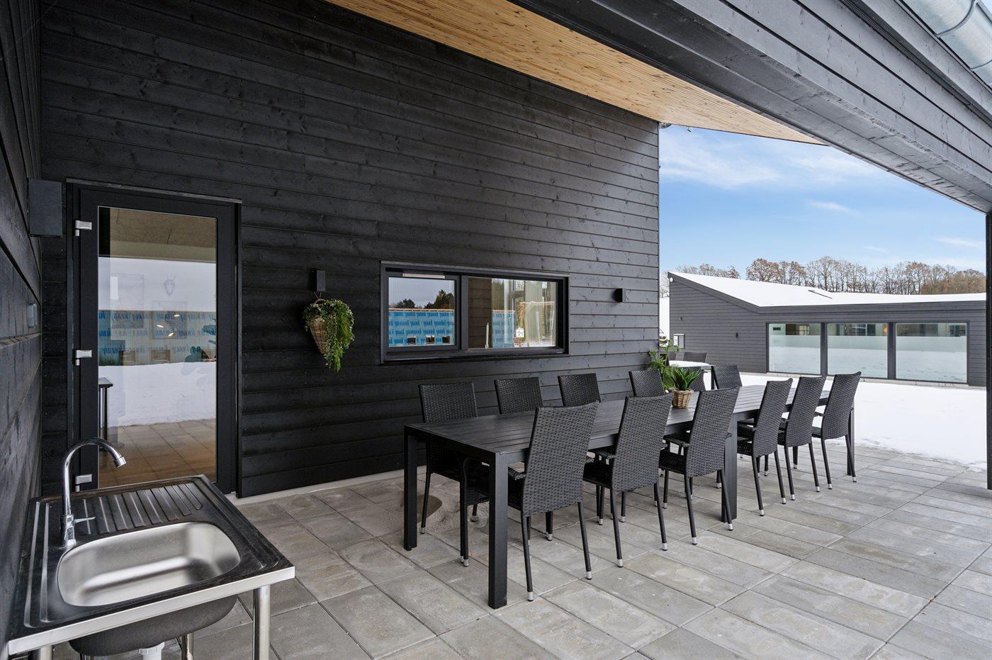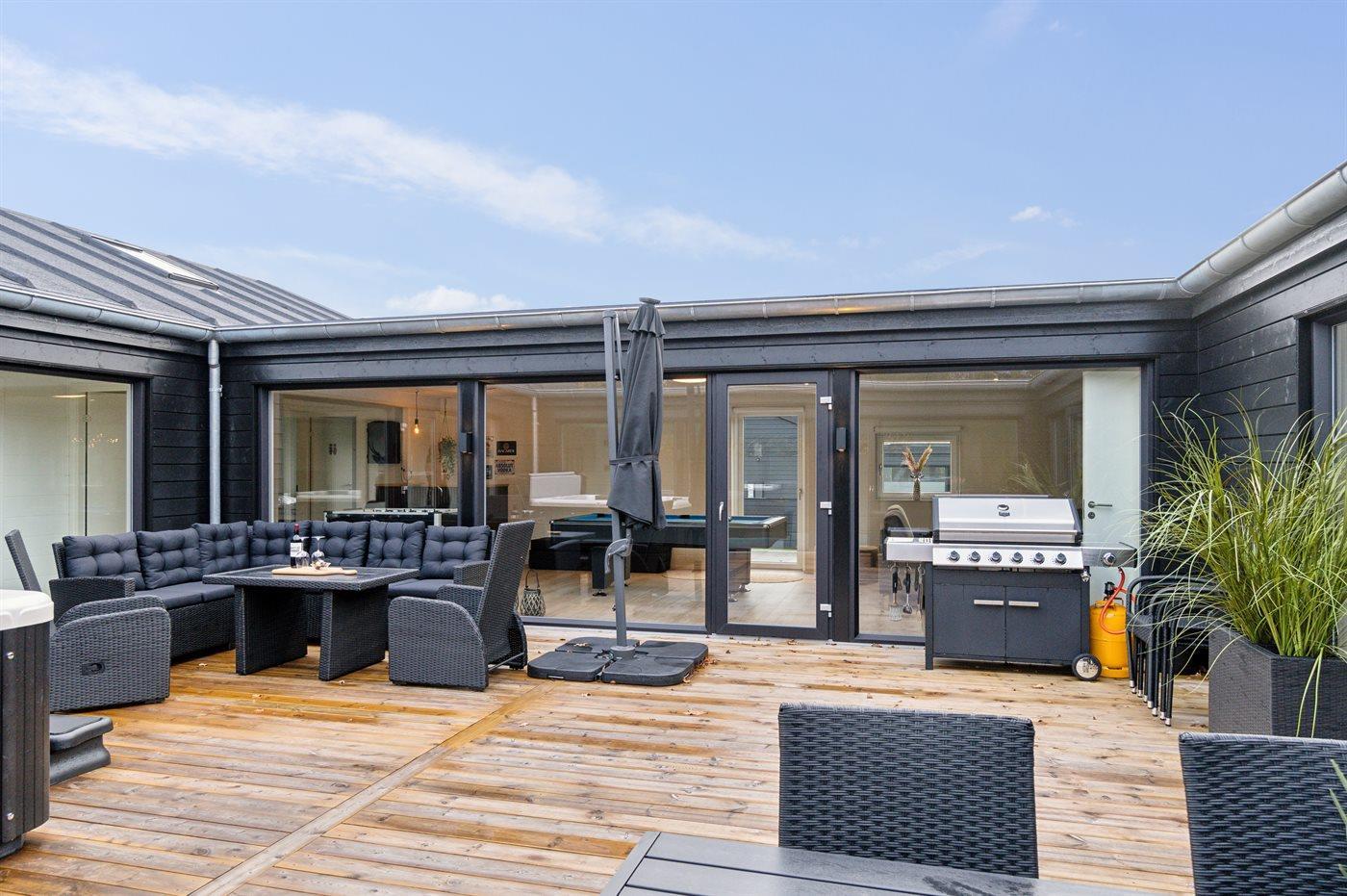Nyt luksussommerhus ved Bønnerup Strand med pool, sauna, spa og aktivitetsrum, perfekt til familier og grupper.