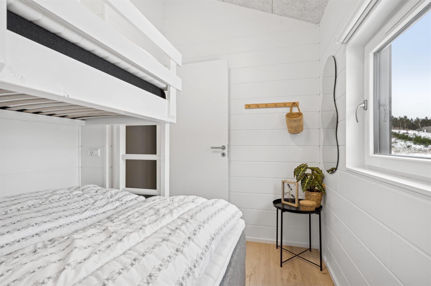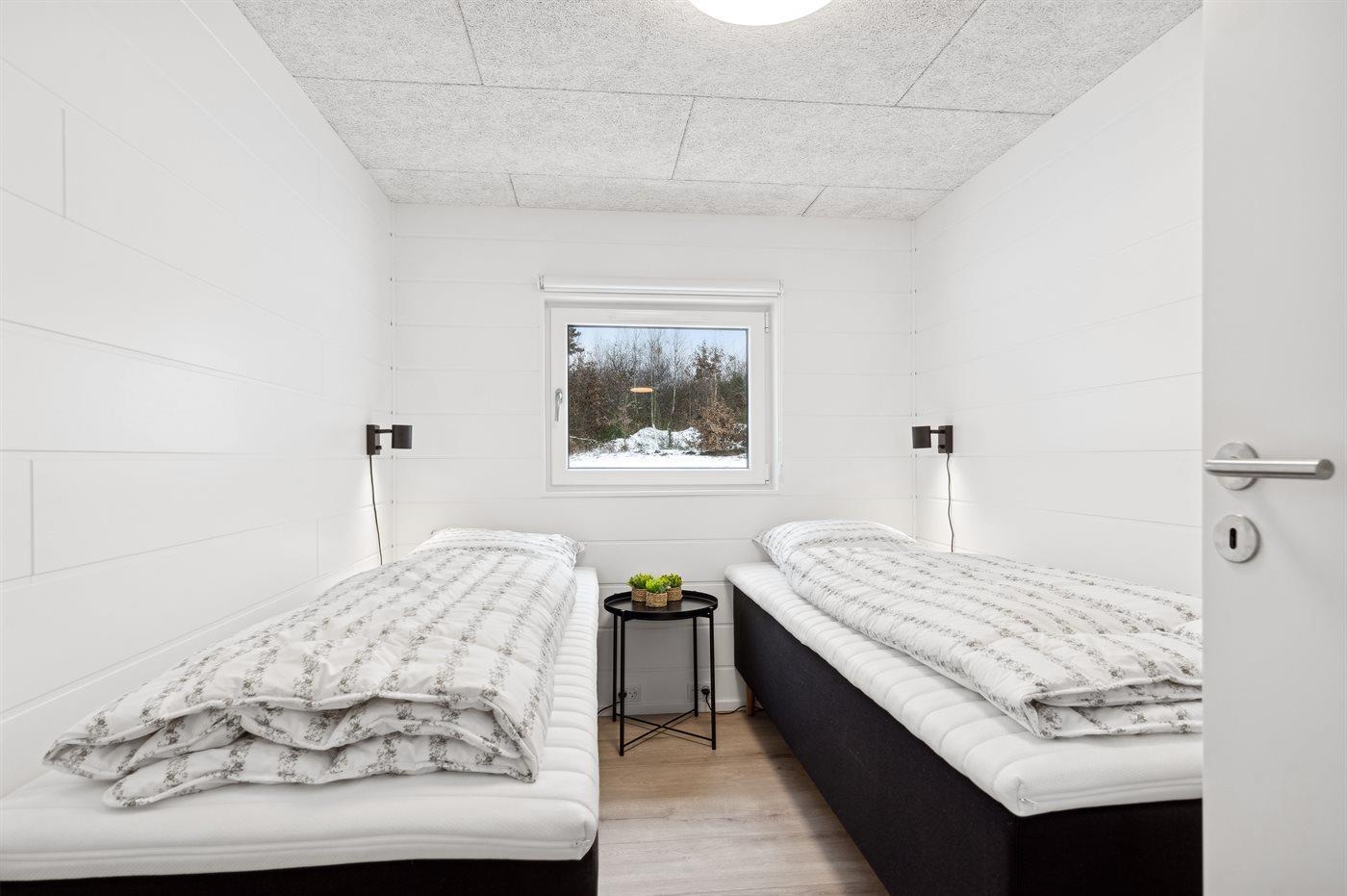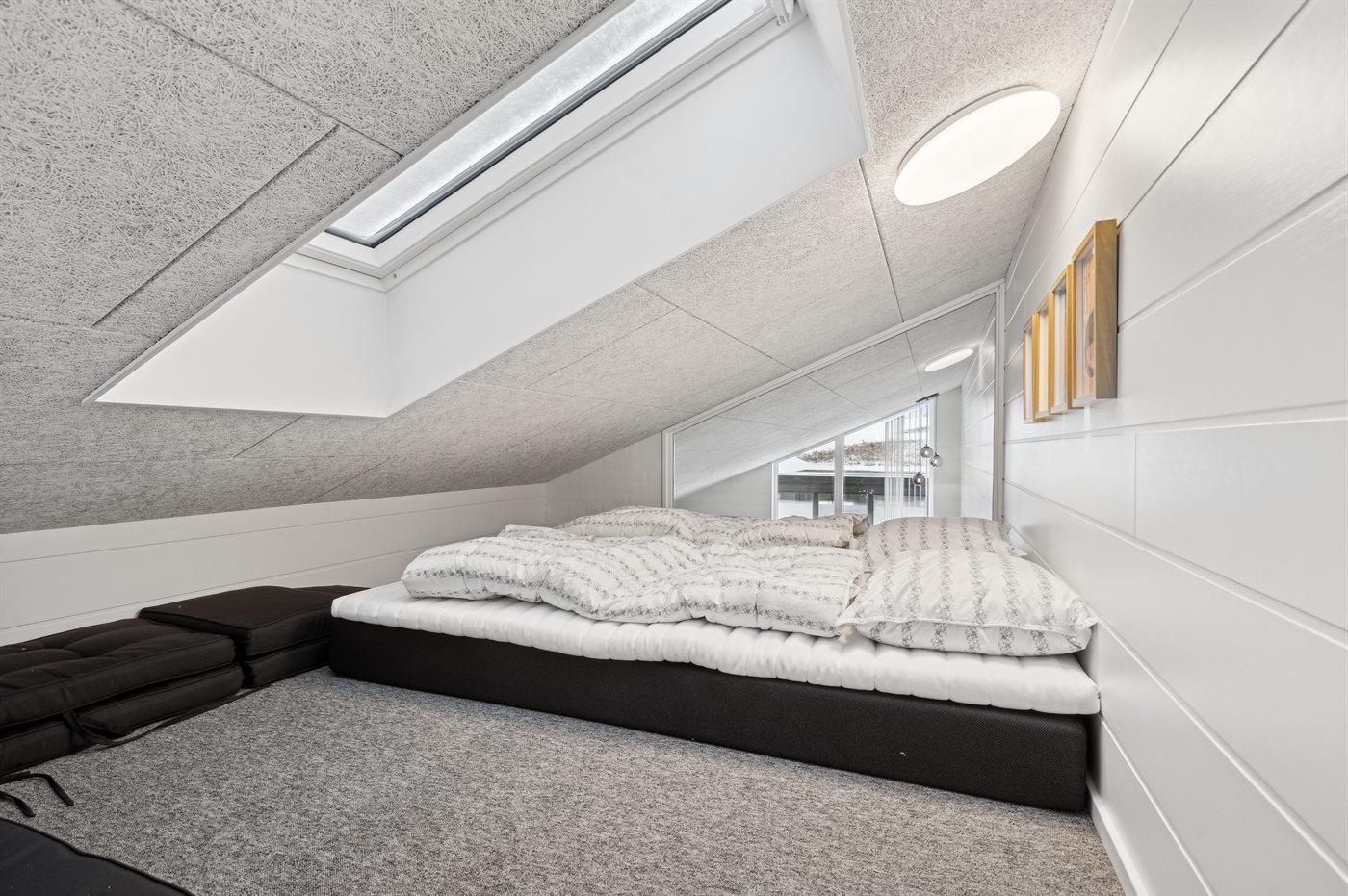 Der er i alt 7 soveværelser. Sovepladserne fordeler sig på: 8 sovepladser i dobbeltsenge. 2 sovepladser i enkeltsenge. 6 sovepladser i køjesenge. 6 sovepladser på madrasser. 6 af disse sovepladser befinder sig på husets hems. Derudover er der 1 stk. barneseng.