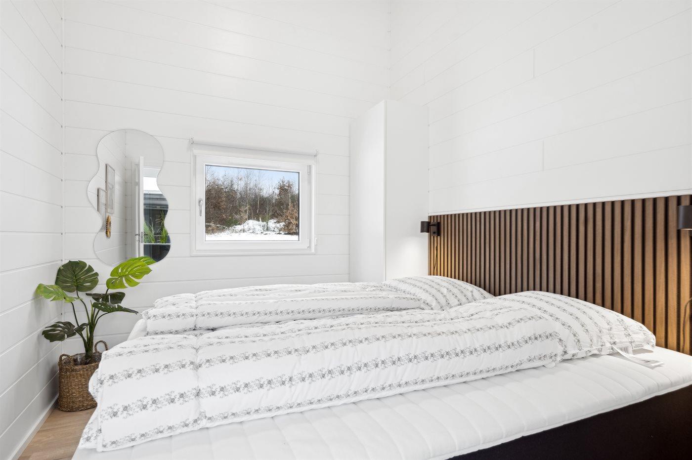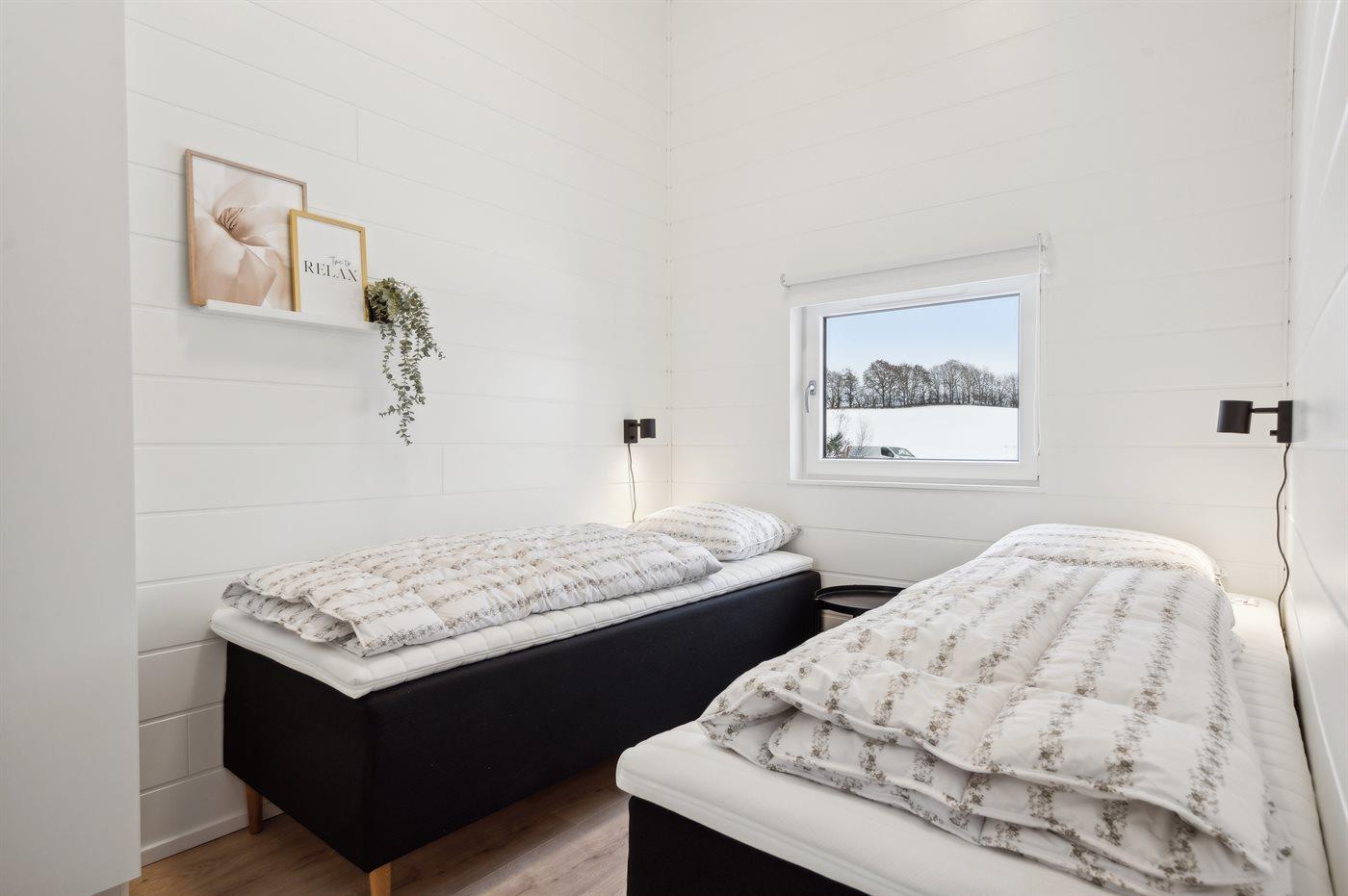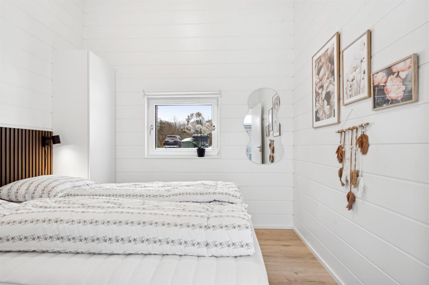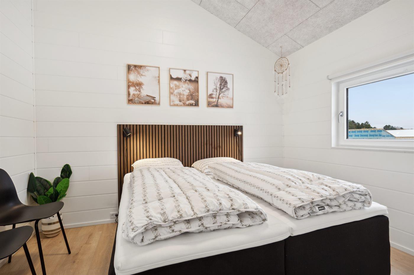 Der er i alt 7 soveværelser. Sovepladserne fordeler sig på: 8 sovepladser i dobbeltsenge. 2 sovepladser i enkeltsenge. 6 sovepladser i køjesenge. 6 sovepladser på madrasser. 6 af disse sovepladser befinder sig på husets hems. Derudover er der 1 stk. barneseng.