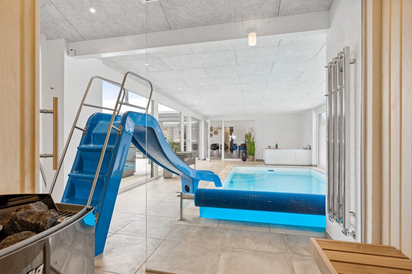 I den indendørs swimmingpool er der mulighed for leg og hyggeligt samvær. Swimmingpoolen måler op til 3 m i bredden, 6 m i længden og den er op til 1,4 m dyb. Vandet er mellem 24 og 28° C varmt.