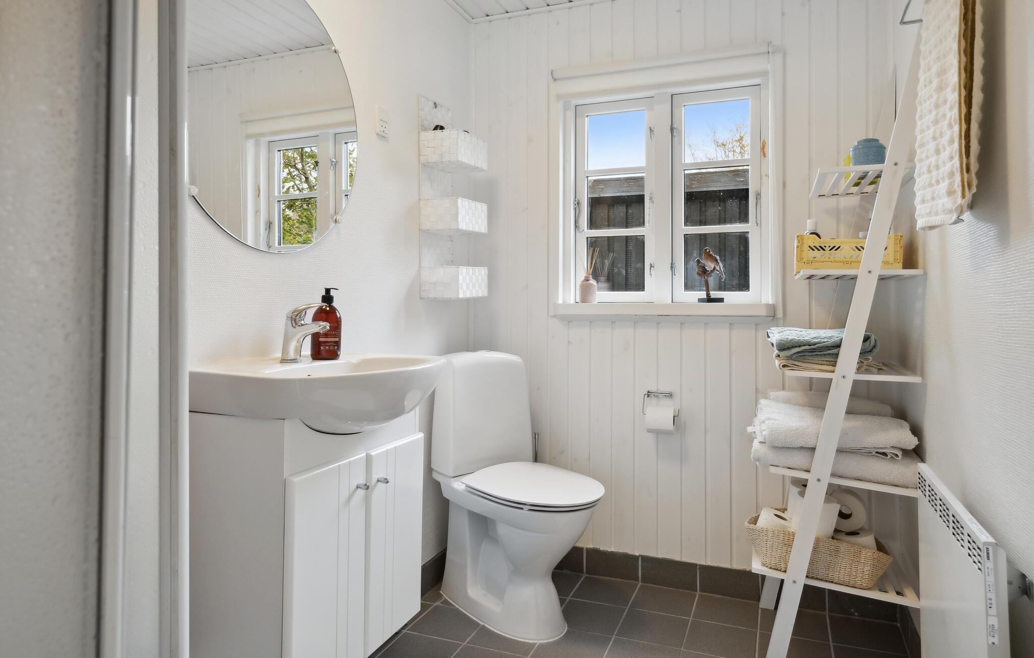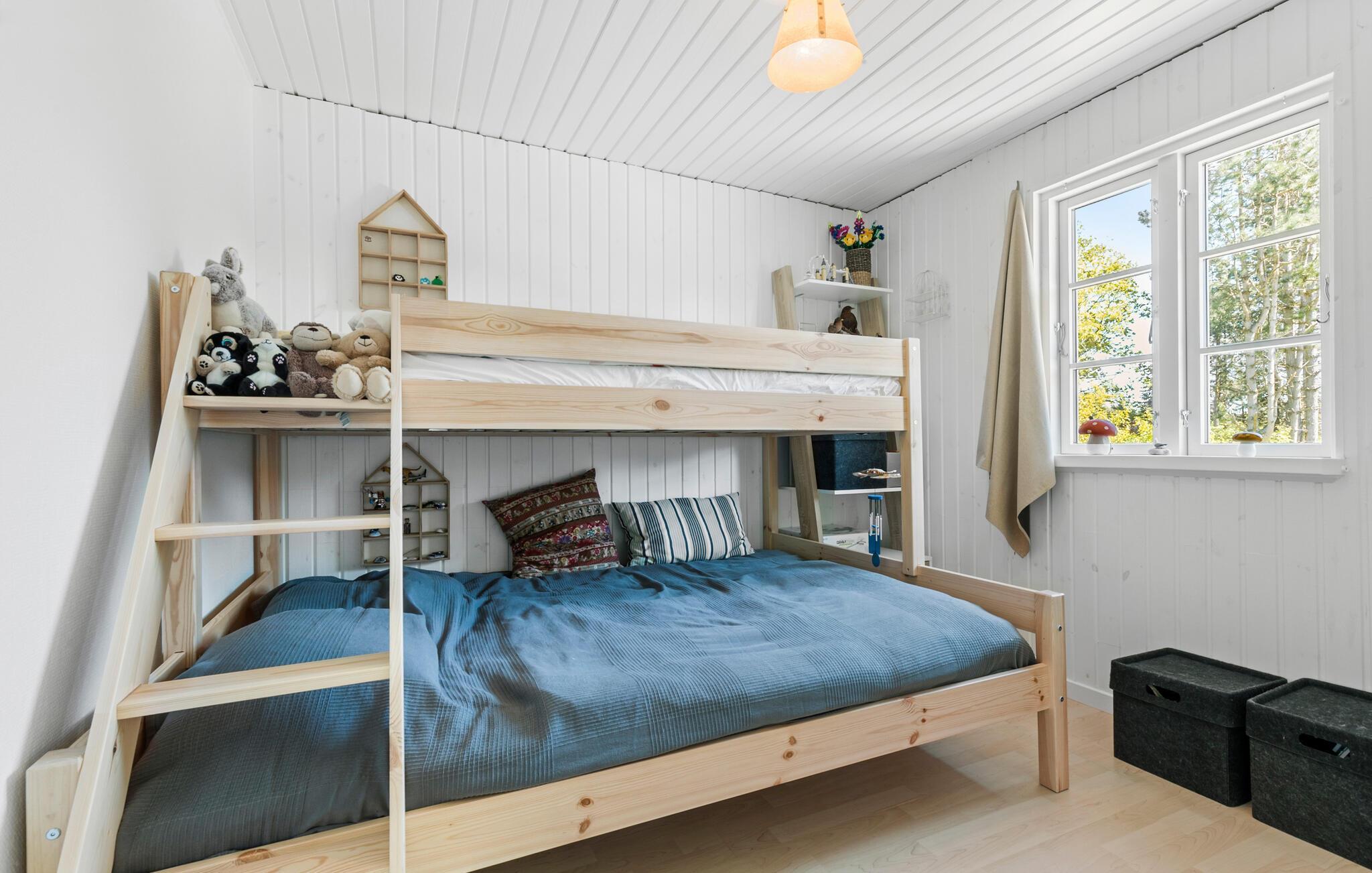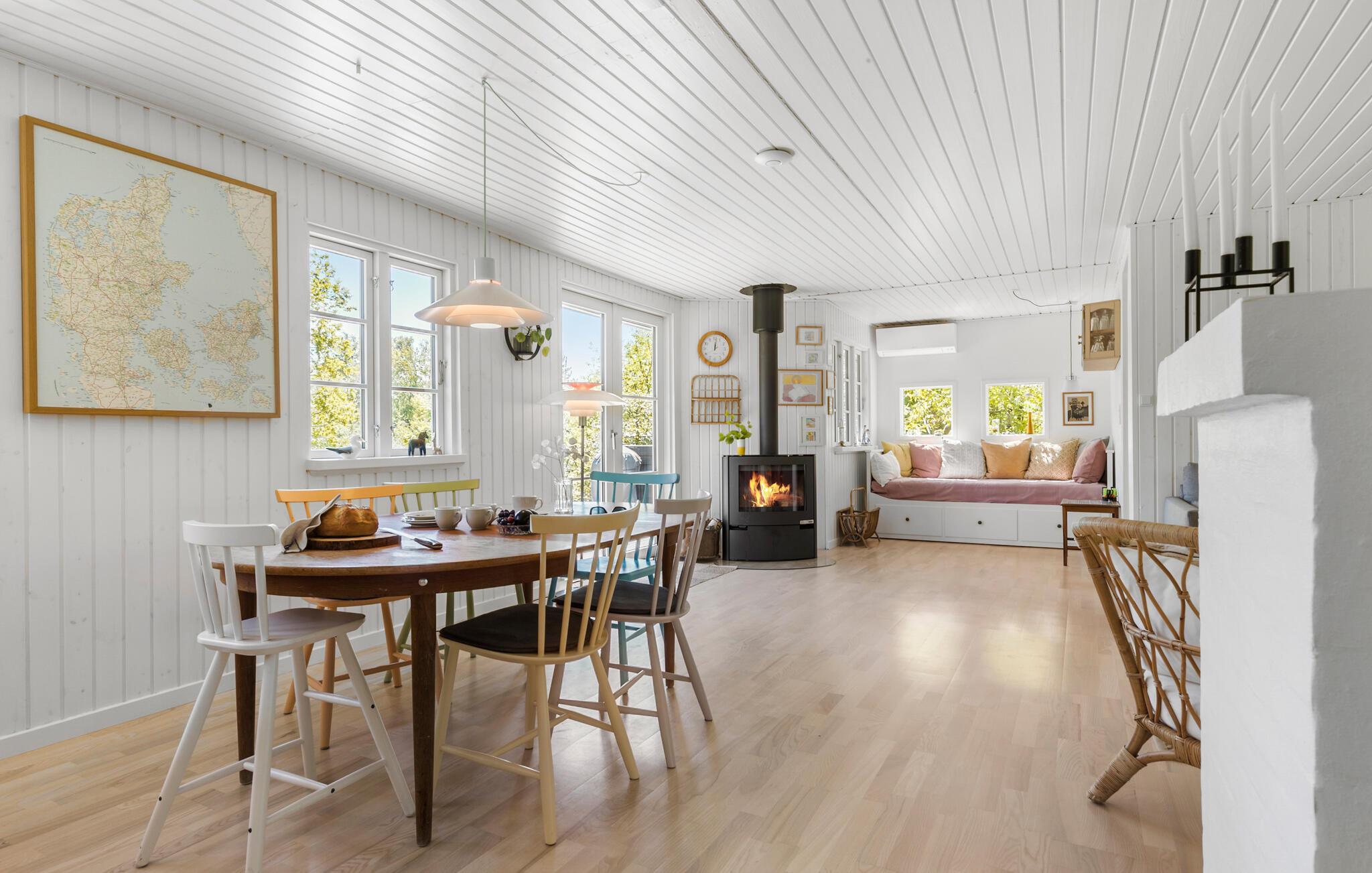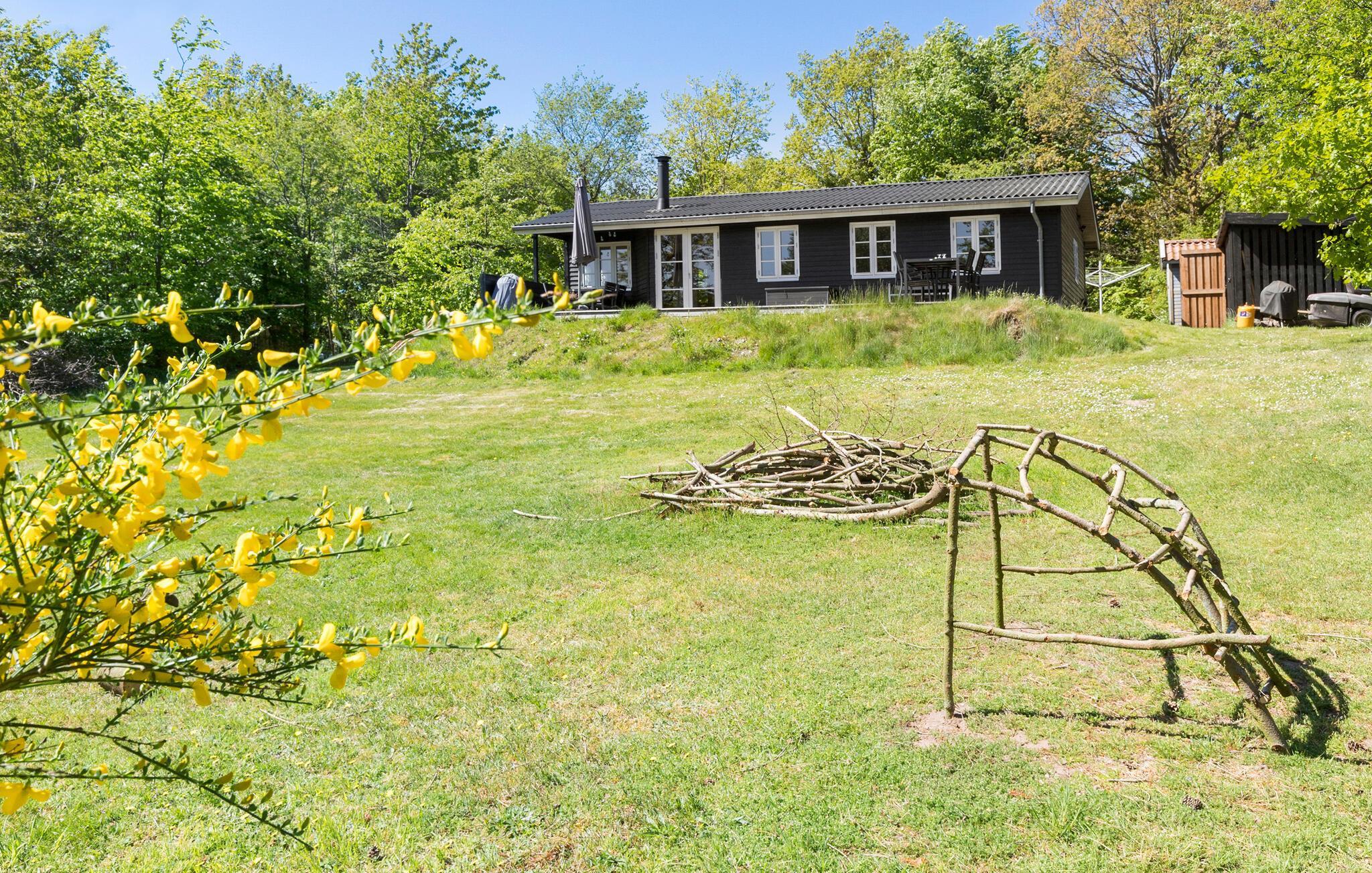 Nyd en afslappende pause fra jeres hverdag med dejlig familietid i dette feriehus i grønne omgivelser. Så snart I træder ind, vil I føle jer hjemme. Den åbne planløsning sikrer ekstra samvær og nærvær, ligesom lyse farver, små detaljer og hyggekroge sørger for en behagelig stemning. Sæt jer med en god bog i gyngestolen eller på skibsbriksen, mens ilden knitrer i brændeovnen. Om aftenen kan I læne jer tilbage i sofaen til en god serie. Huset ligger på en skråning, så jeres børn kan løbe fra terrassen og ned på græsplænen, hvor der står en trampolin klar til mange timers sjov. Nyd solen og blikket over haven fra terrassen og læg planer for de næste dages aktiviteter.