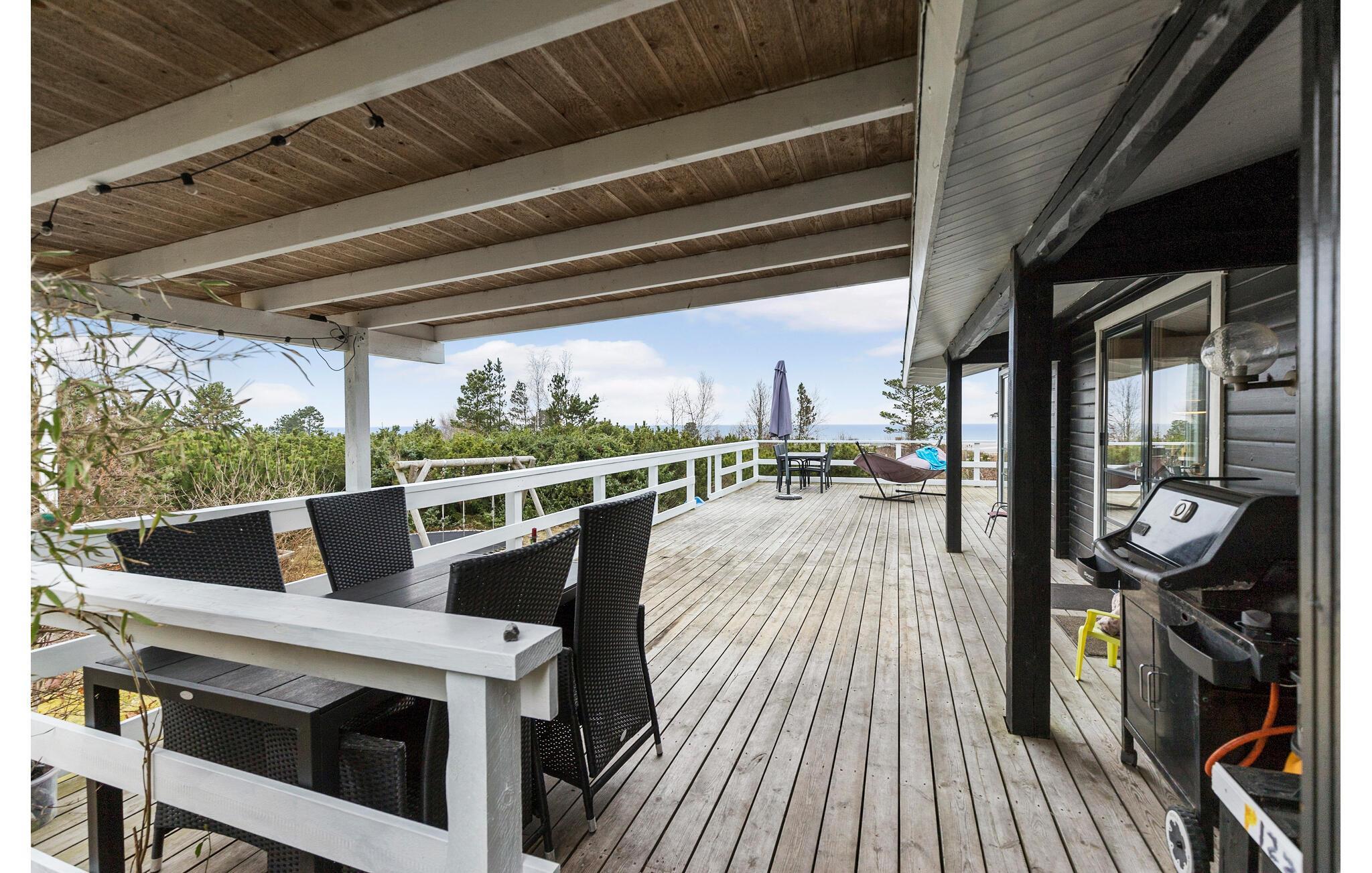 Den rummelige og delvist overdækkede terrasse lokker jer udenfor på de varme dage. Her har I en lille oase af fred og ro, hvor I kan nyde morgenkaffen, nyde udsigten til havet og lægge jer i hængekøjen med en god bog. Fra terrassen kan børnene rende ned i haven, der ligger dejlig ugeneret og har masser af plads at boltre sig på.