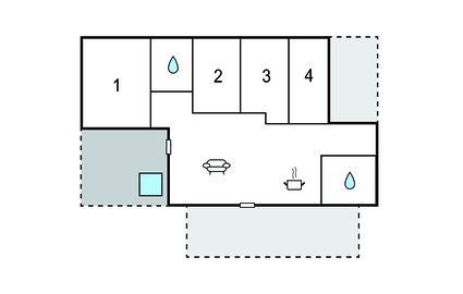 Udenfor venter den overdækkede terrasse – det perfekte sted til morgenkaffe i solen eller lange aftener under tæpper og stjernehimmel. Og som prikken over i’et er der en udespa, hvor boblerne gør arbejdet, mens I læner jer tilbage og nyder ferien.