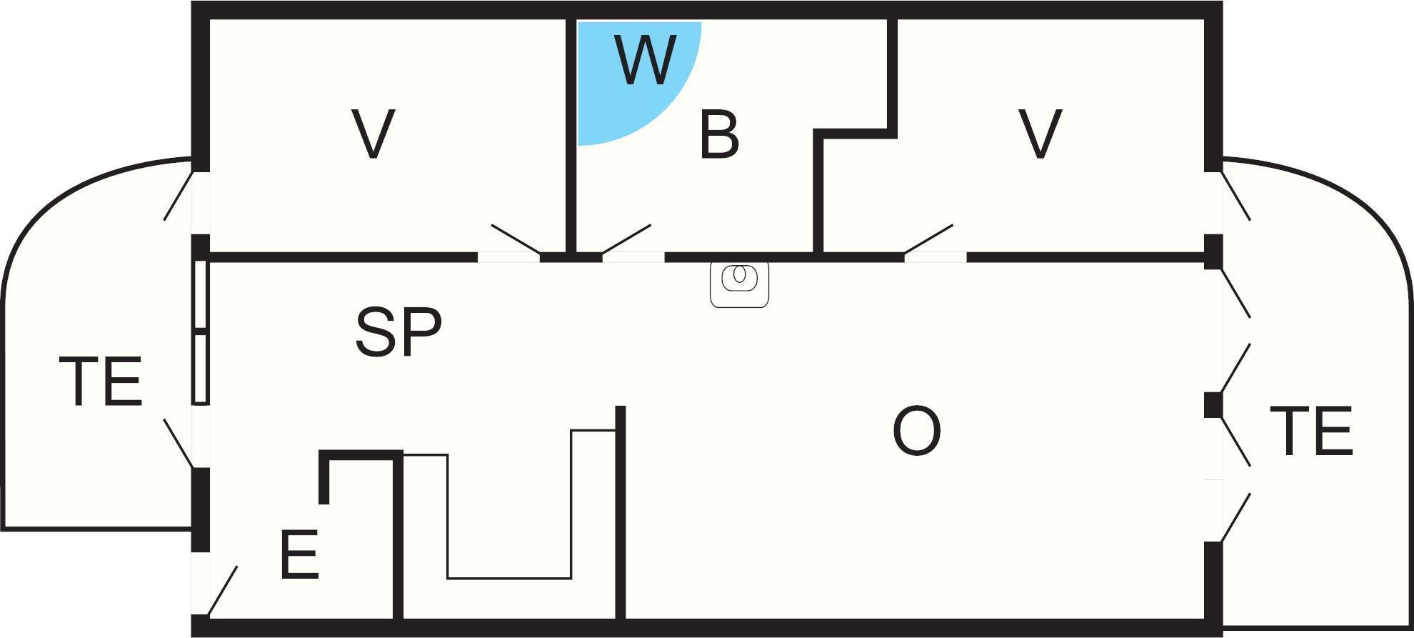 1 Opholdsstue: (2O), brændeovn, kabel-tv