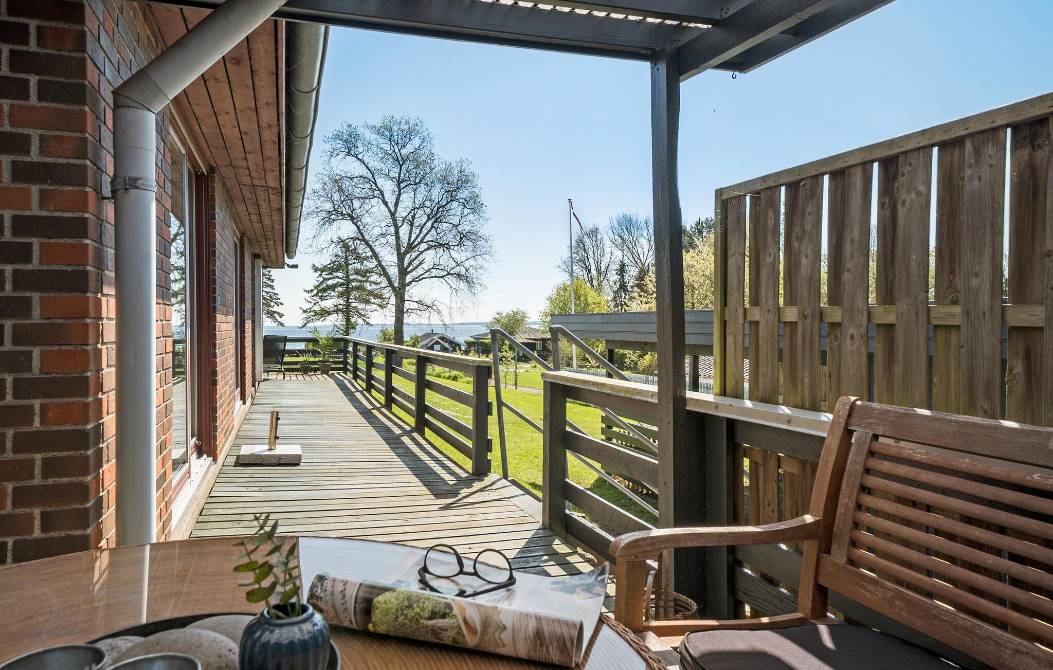 Når vejret er godt, kan I nyde den lige fra morgenstunden på træterrassen, der omgiver huset. Begynd dagen med en lækker morgenmad med havudsigt og rund en smuk sommerdag af med saftige bøffer på den overdækkede terrasse bag huset. Huset er omgivet af en åben have, der indbyder til leg og boldspil, inden I tager på tur.