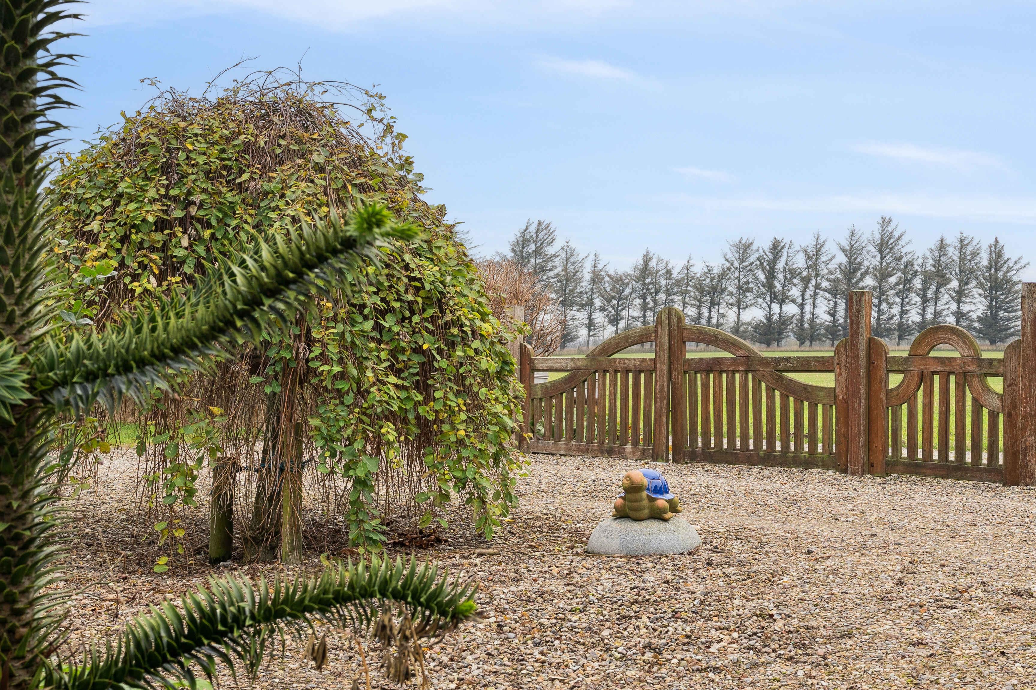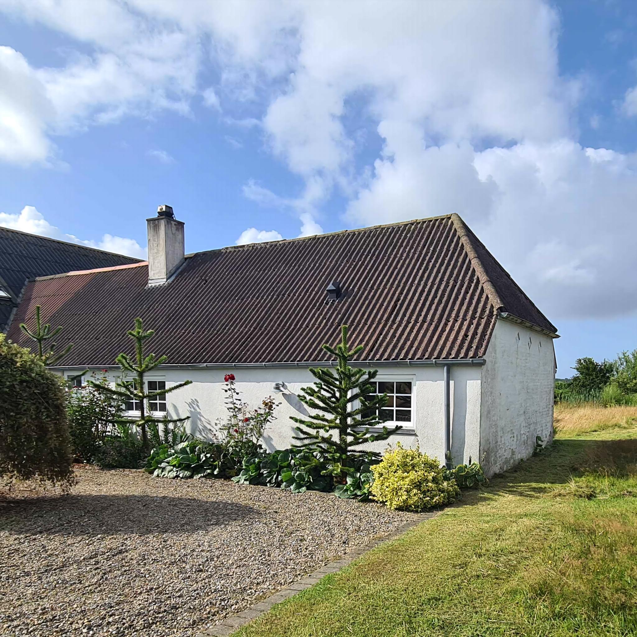 Hyggeligt stuehus på landet nær Vesterhavet med heste, terrasse, have og plads til både hund og hest.