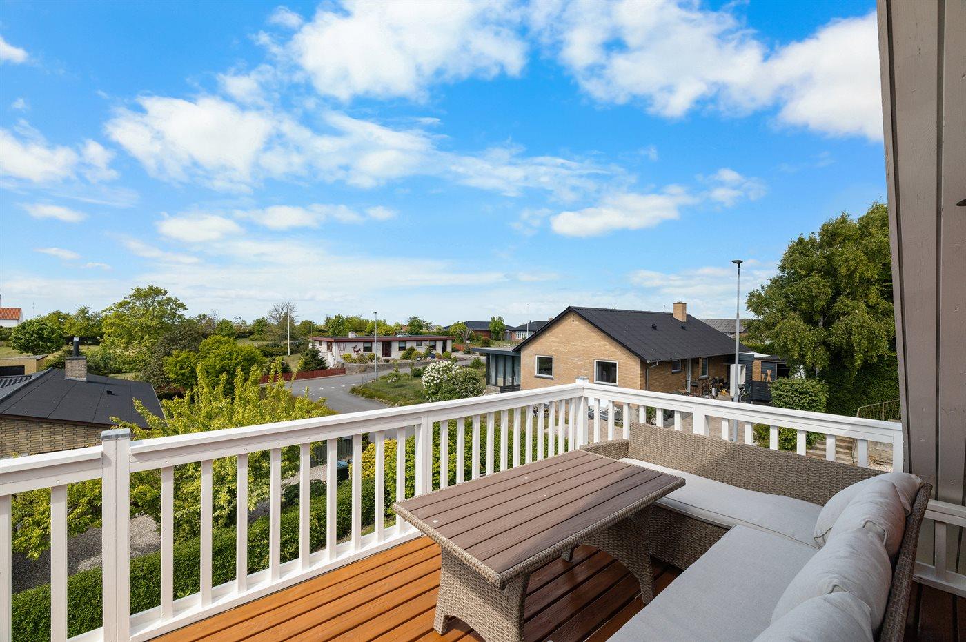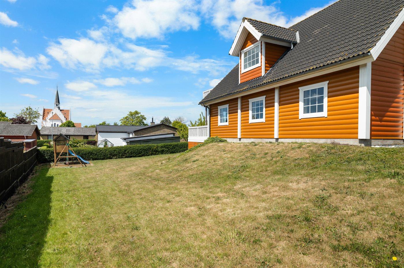 Flot finsk bjælkehus i 2 plan beliggende i hyggelige Bagenkop. Huset er lyst og med god plads. På grunden er der god plads til udendørs aktiviteter. På terrassen er der indbygget stort udespa, og fra altanen er der udsigt ud over området og kig til vandet.