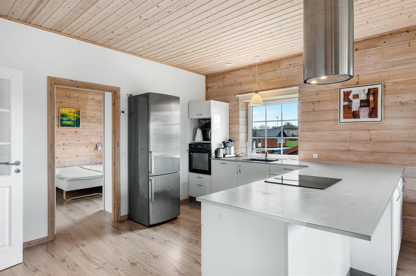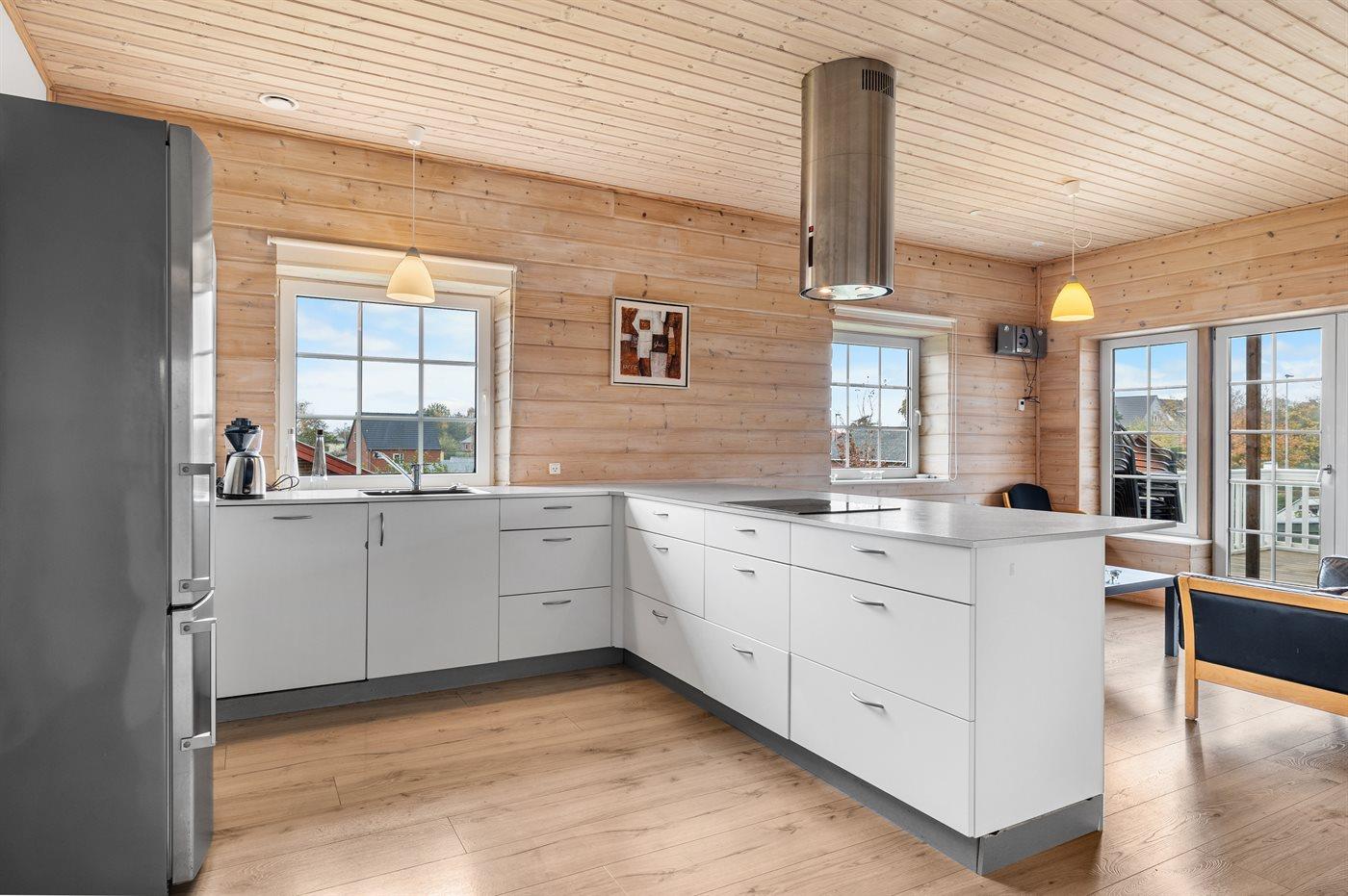 Køkkenet er udstyret med 1 køleskab. Der er 4 induktionskogeplader, varmluftovn, mikrobølgeovn samt opvaskemaskine.