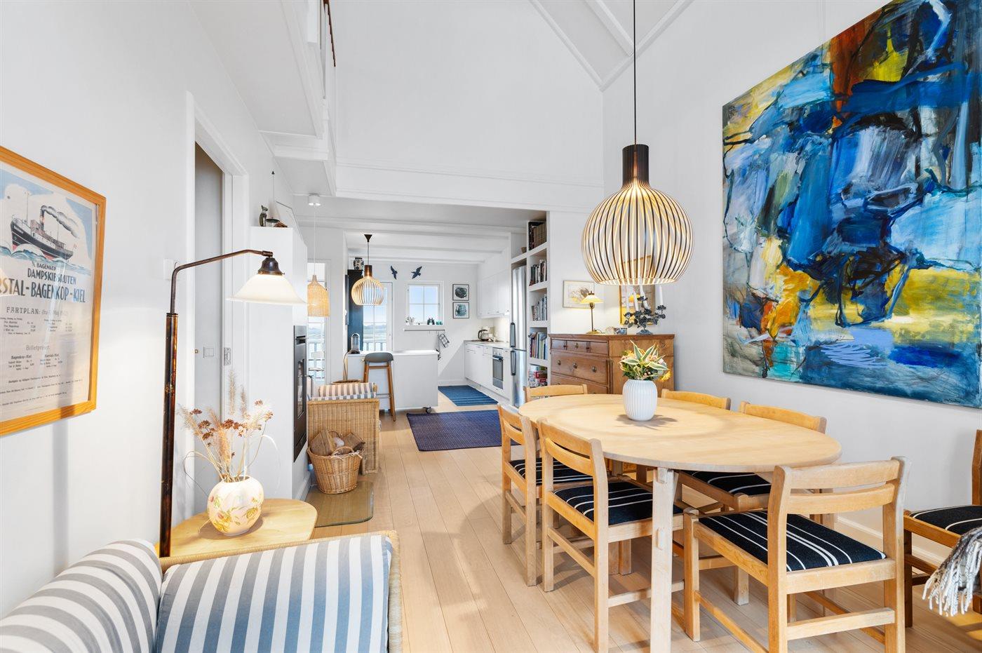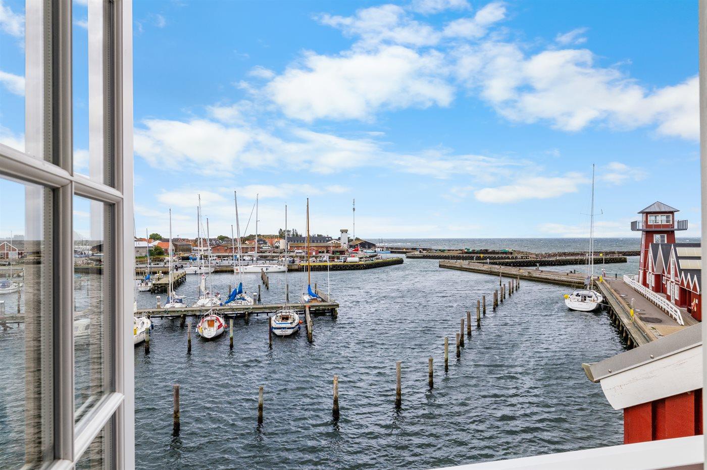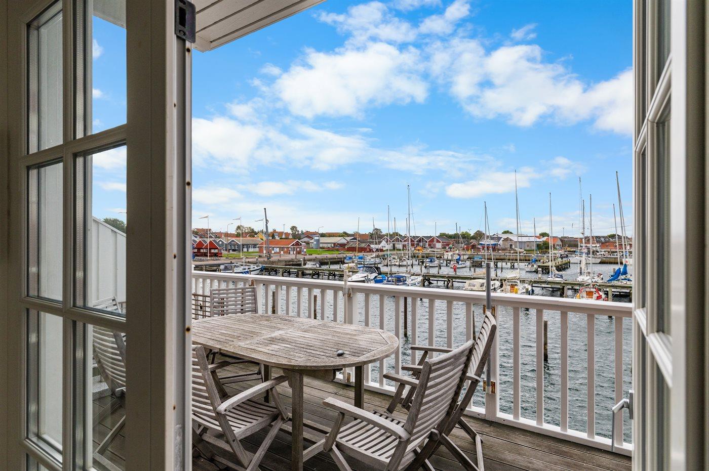 Lejligheden ligger på hhv. 1. og 2. sal og har terrasser på begge sider. Fra den ene side er der udsigt ud over hele marinaen og fra den anden er der udsigt ud over stranden, hvor der er i sommerhalvåret, er opsat badebro.