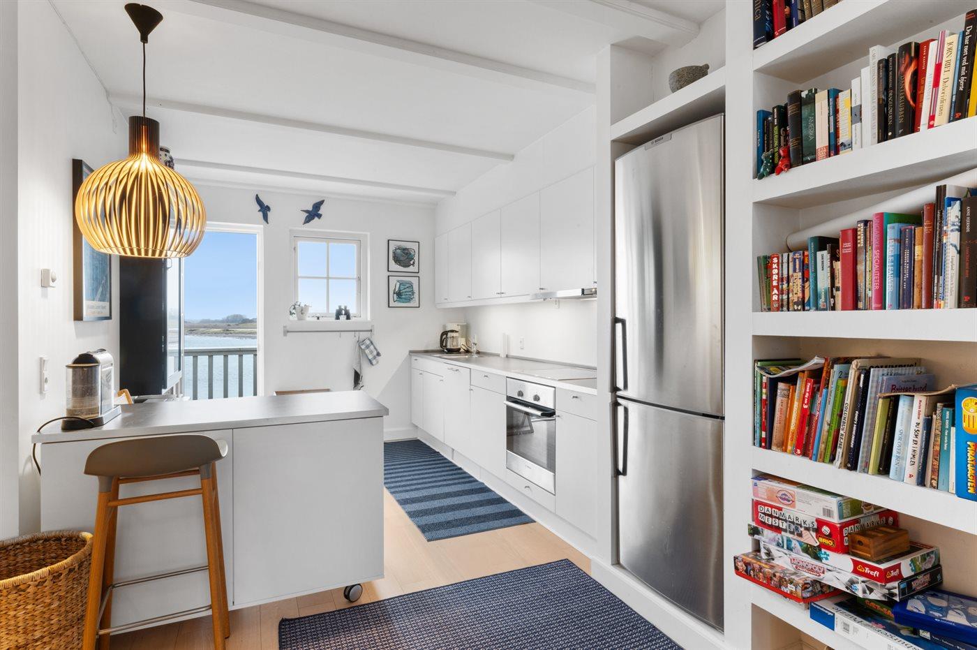 Køkkenet er udstyret med 1 køleskab. Der er 4 keramiske kogeplader, varmluftovn samt opvaskemaskine.