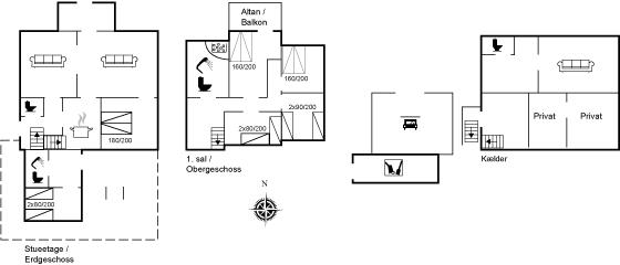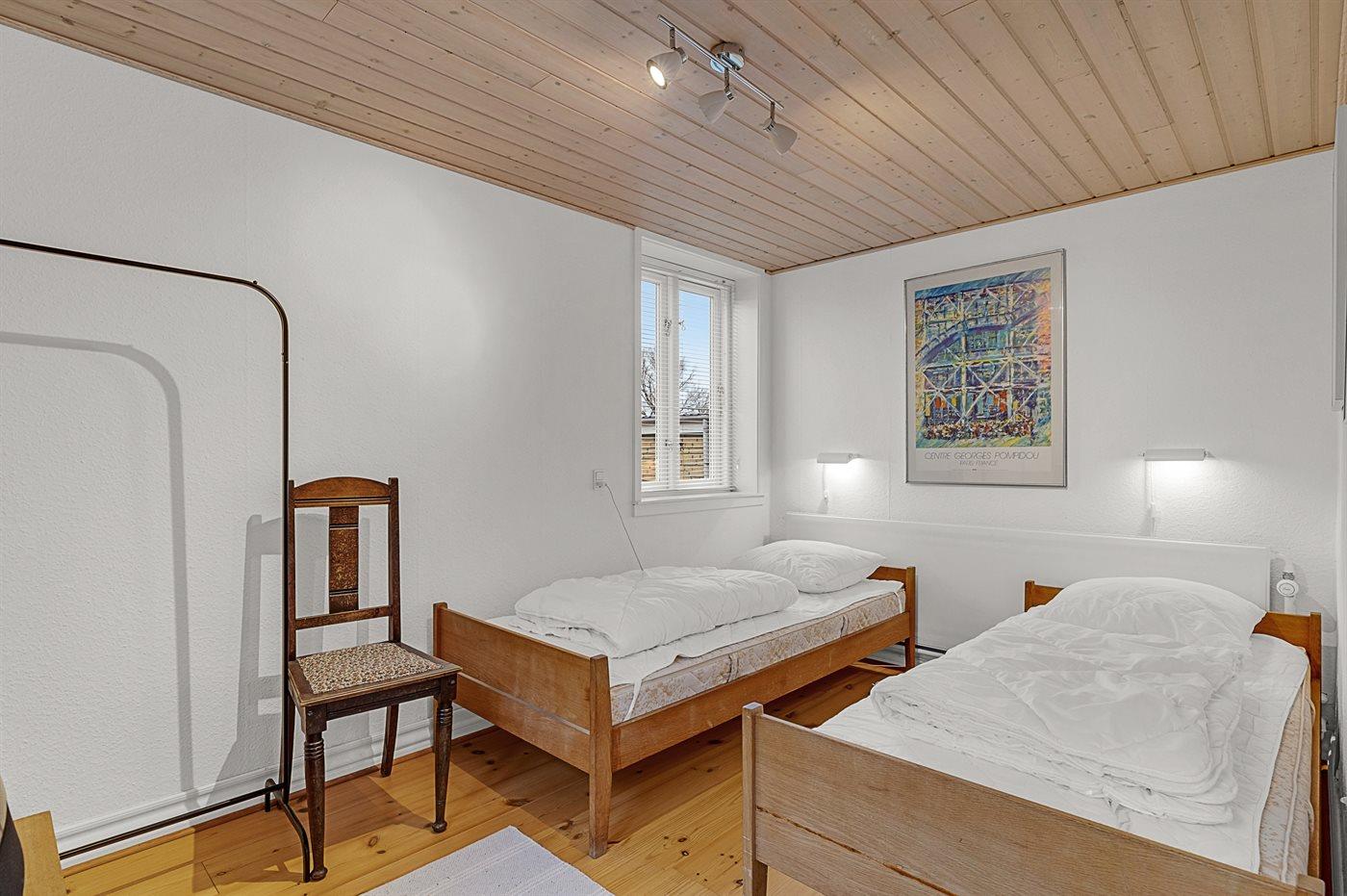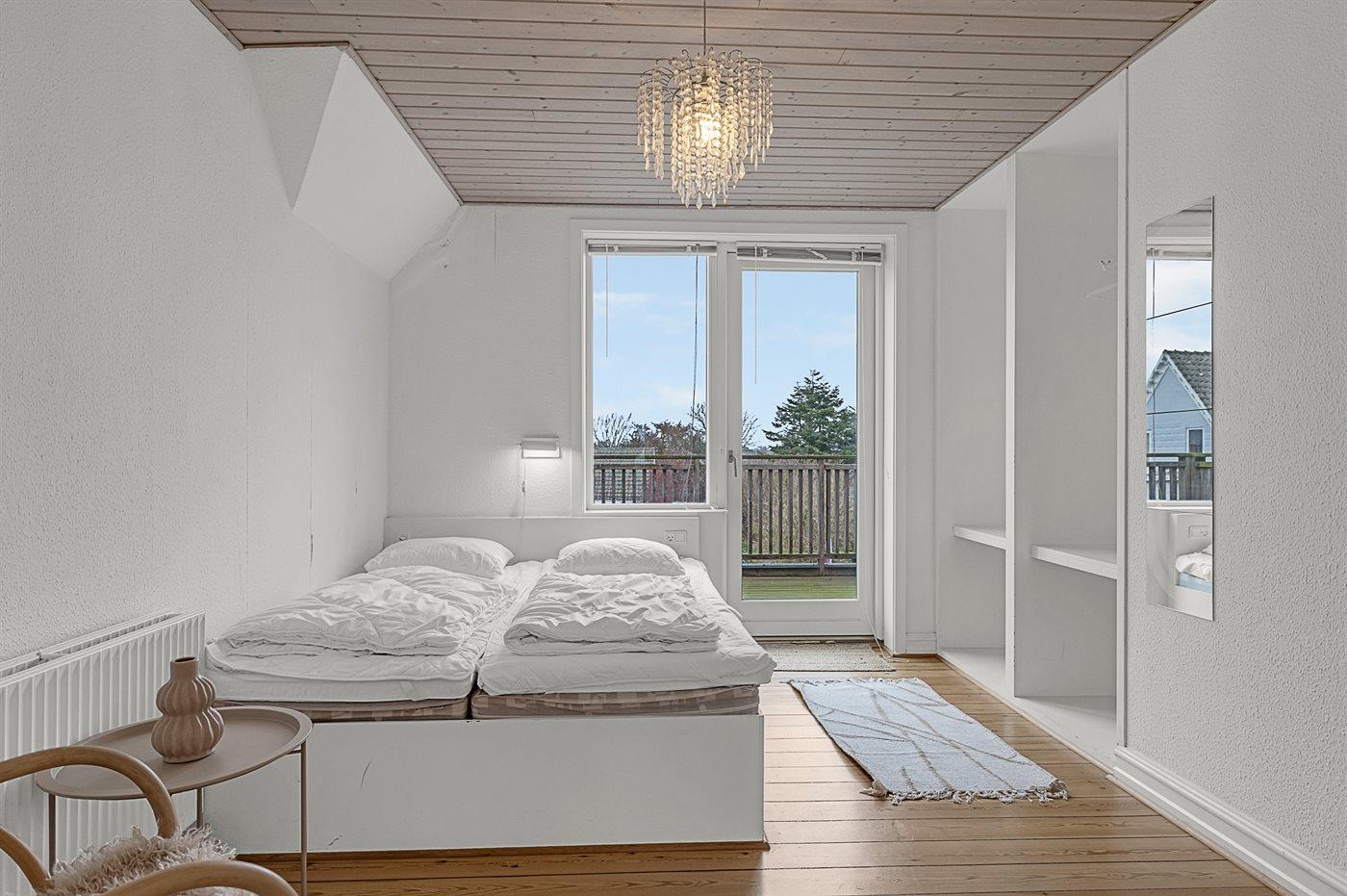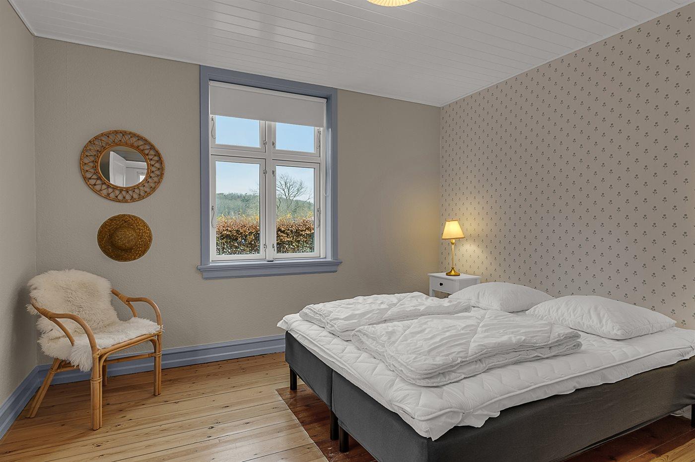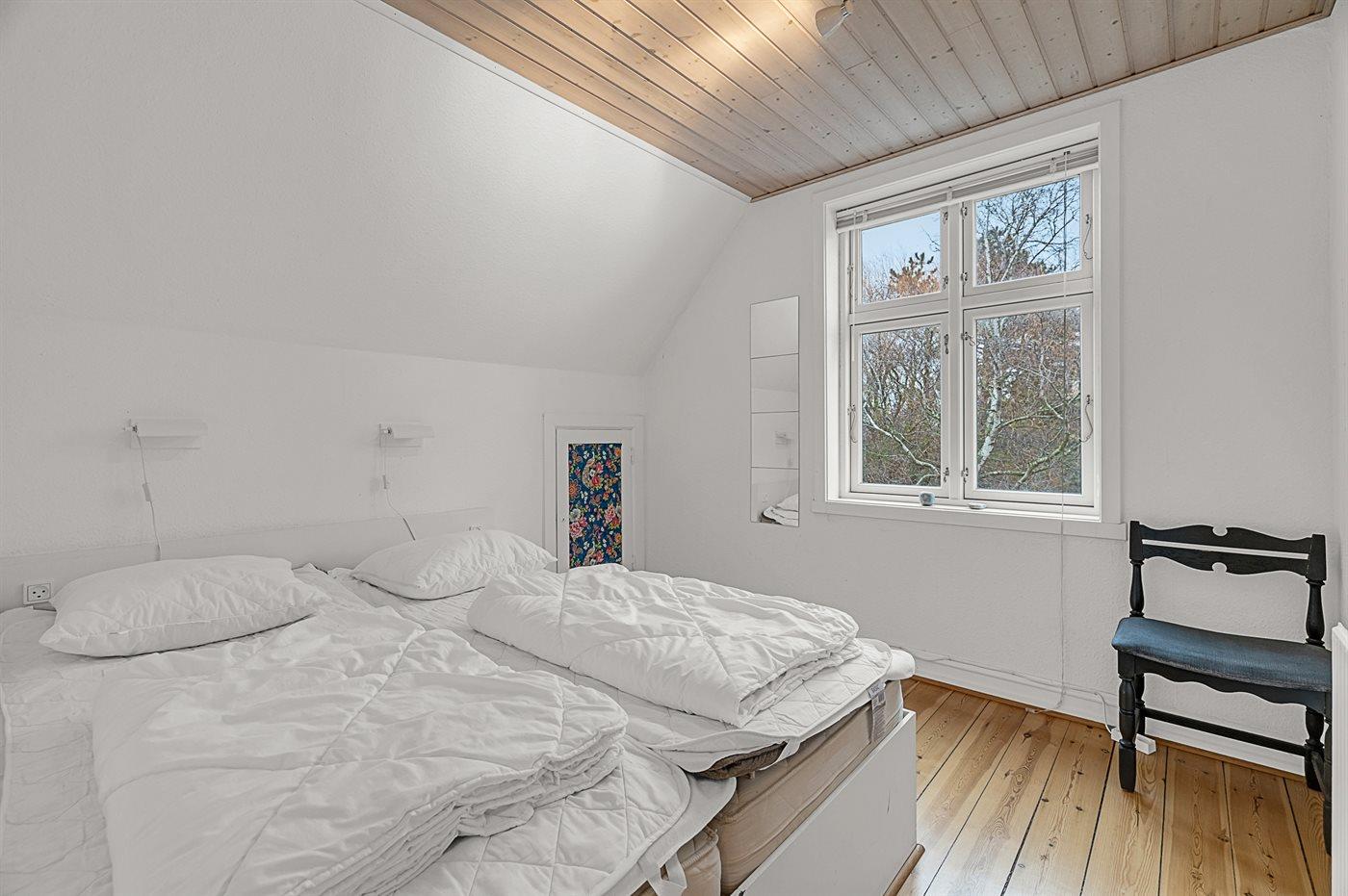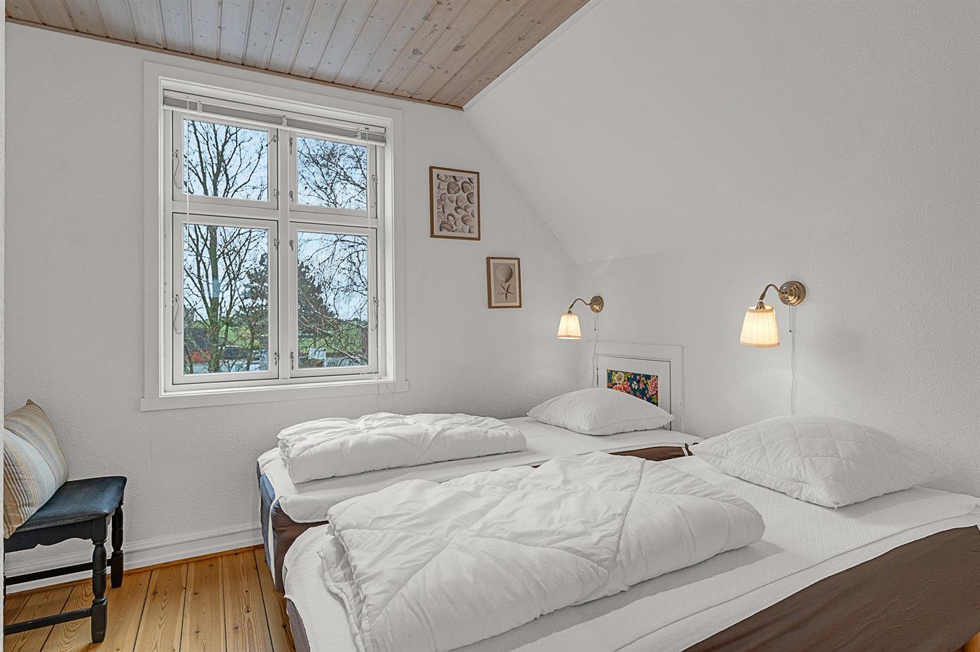 Der er i alt 6 soveværelser. Sovepladserne fordeler sig på: 6 sovepladser i dobbeltsenge. 6 sovepladser i enkeltsenge. 2 sovepladser på madrasser. 2 af disse sovepladser befinder sig på husets hems. Derudover er der 2 stk. barnesenge.