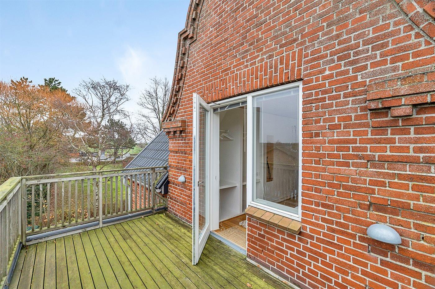 På 1.salen findes der soveværelser, hvorfra der fra det ene er udgang til tagterrasse med udsigt udover byen. Her er der også et stort badeværelse med spa. Fra stueetagen er der desuden opgang til den store hems, hvor man finder de to sovepladser på madrasser.