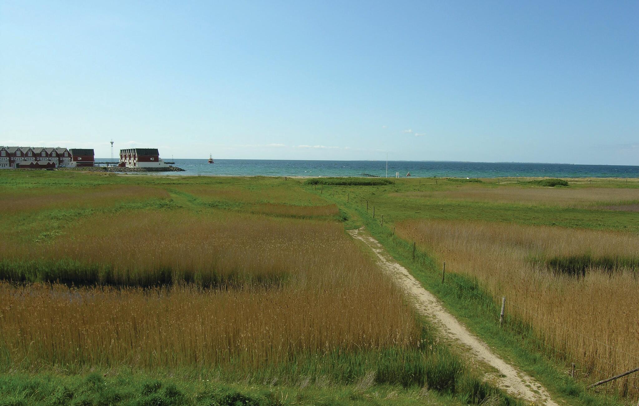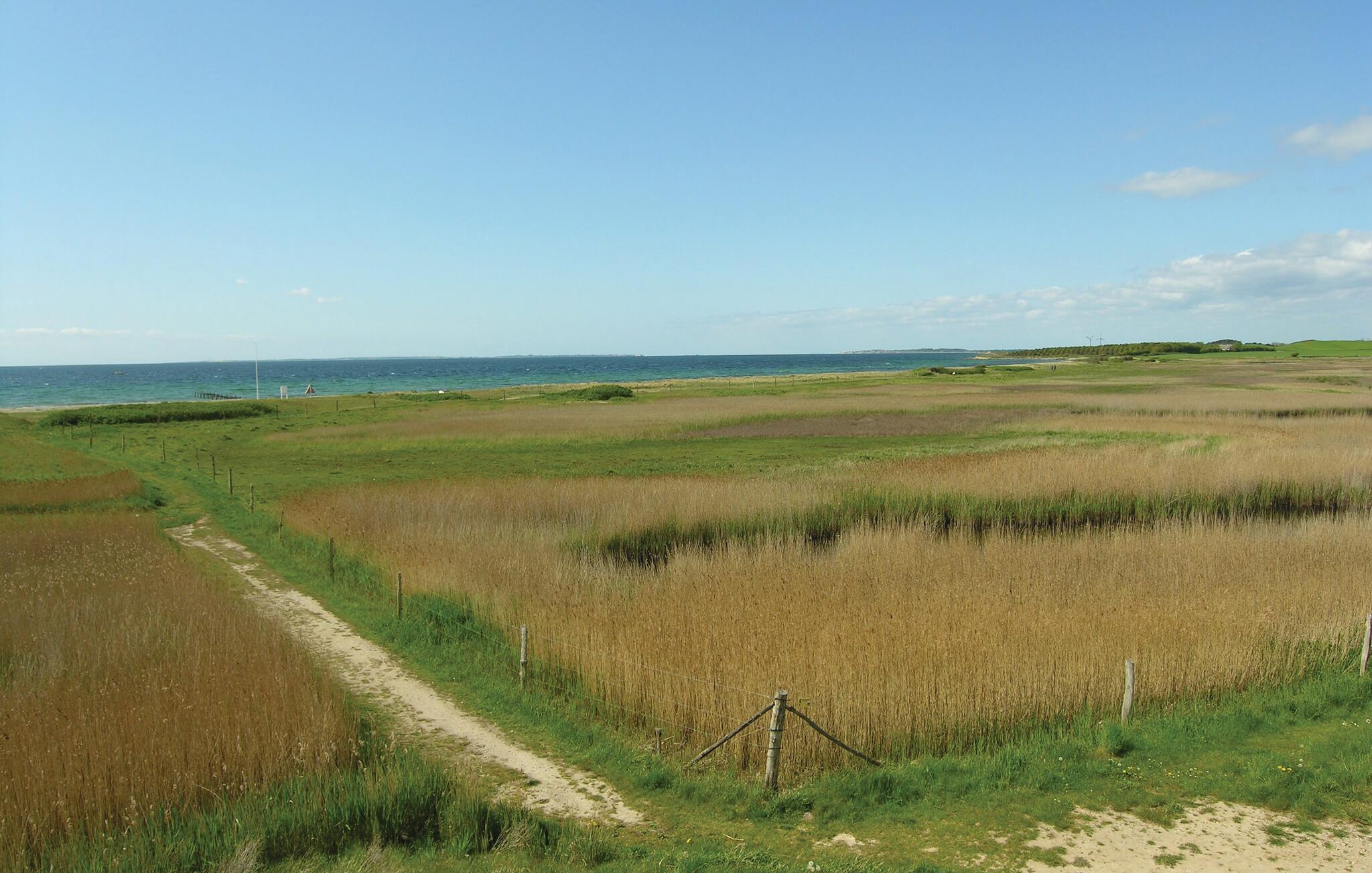 Luksusferiehus i Bagenkop med panoramaudsigt over vandet og vilde heste, perfekt til afslapning og naturoplevelser.
