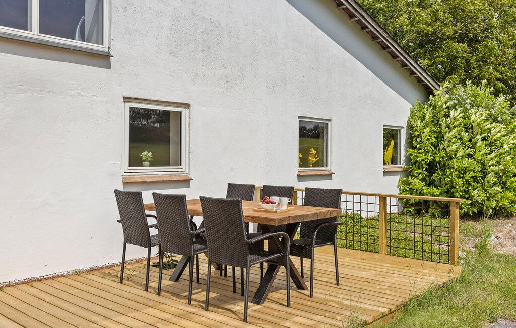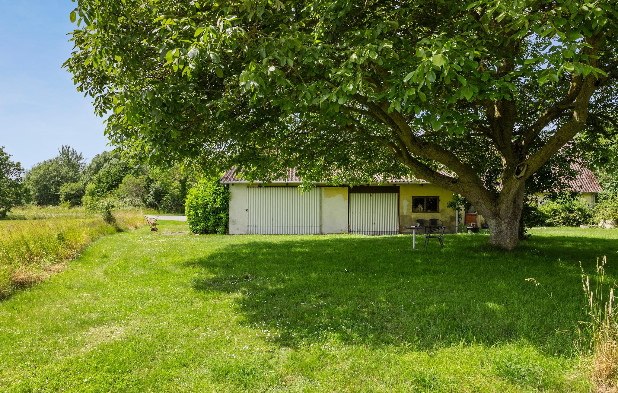 Slap af på den åbne træterrasse, som er oplagt til udendørs spisning eller en kop kaffe i solen. Afslut dagen under det gamle træ i haven eller nyd udsigten over markerne i det fjerne. Den omkringliggende natur og den rolige beliggenhed sikrer ren afslapning.
