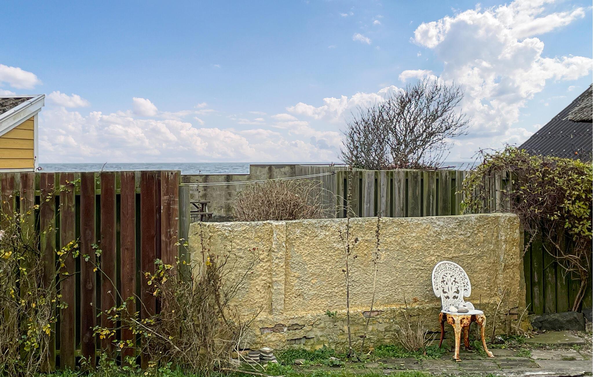 Charmerende feriehus fra 1700-tallet ved en stenstrand med hyggelig have og moderne faciliteter.