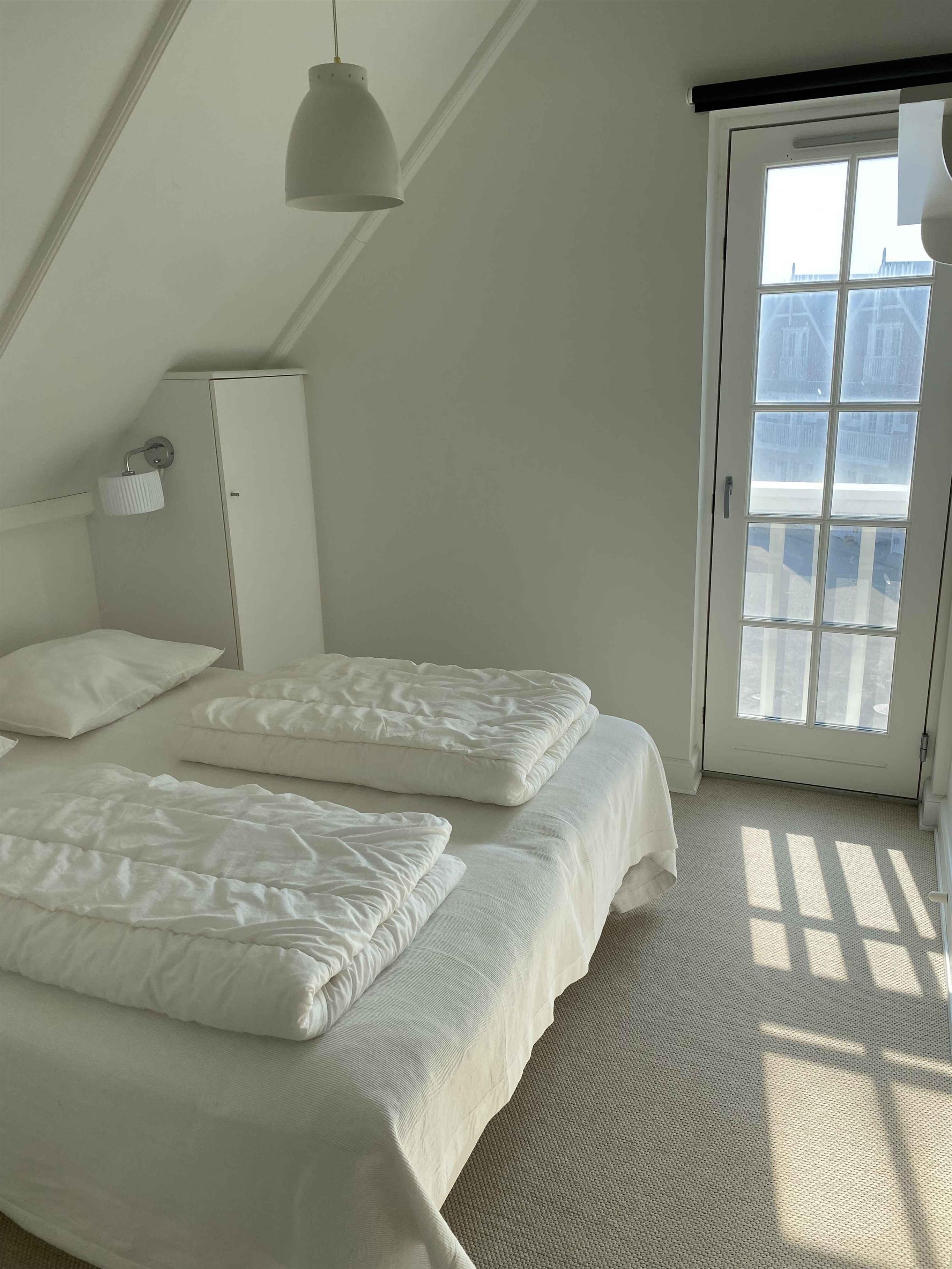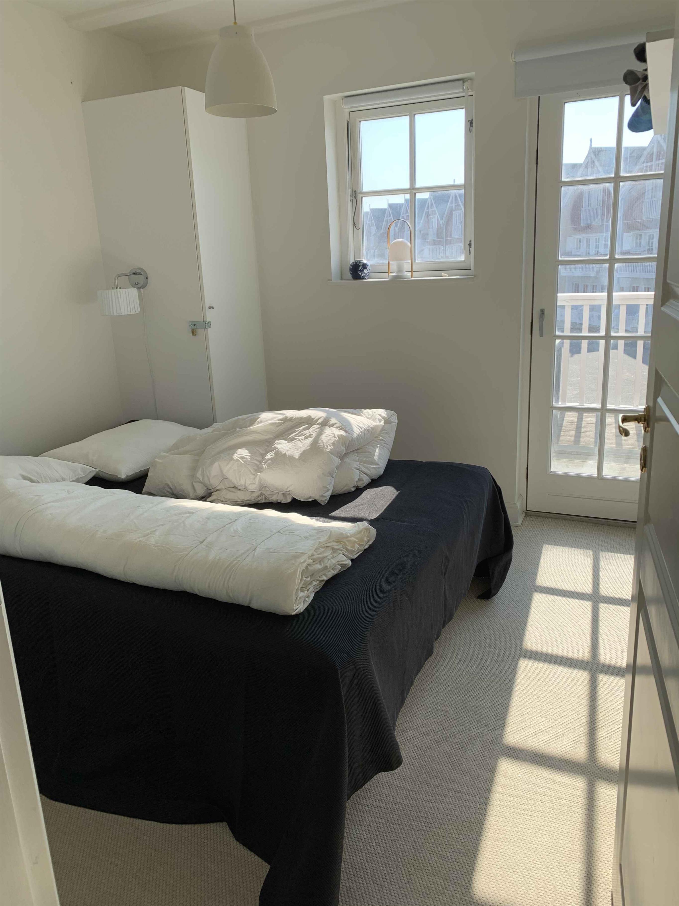 Med tre soveværelser og to badeværelser er lejligheden egnet for familier eller to par, der ønsker at nyde en ferie ved skov og strand tæt på naturskønne områder. Der er en terrasse mod havnen med morgensol og en terrasse mod havet med aftensol.