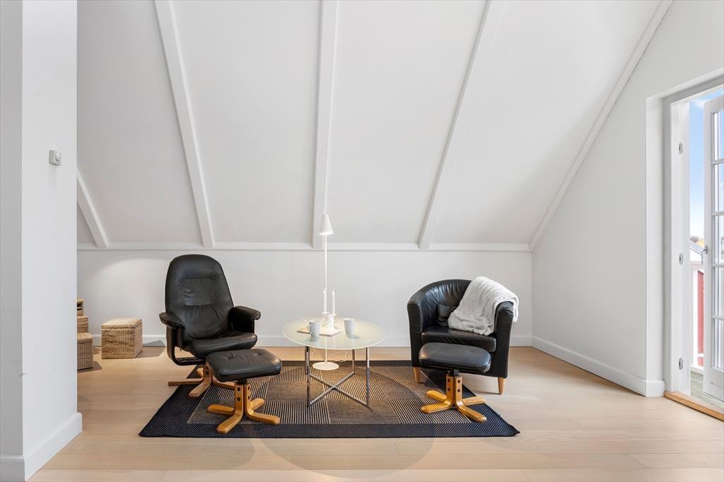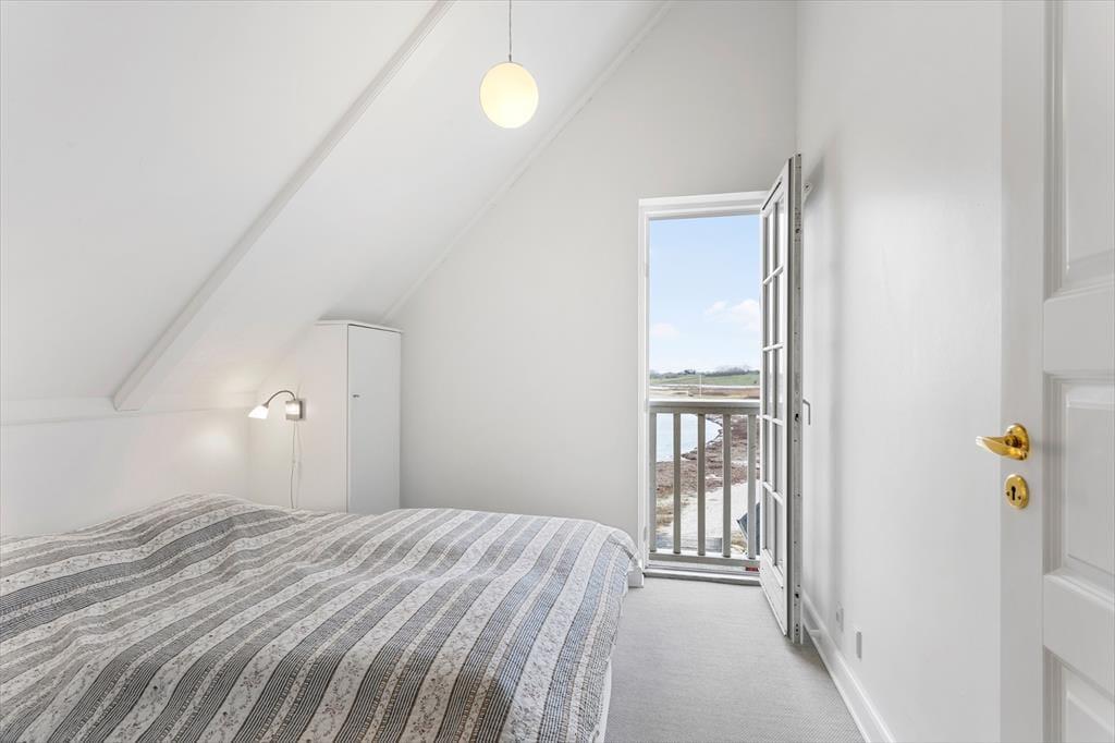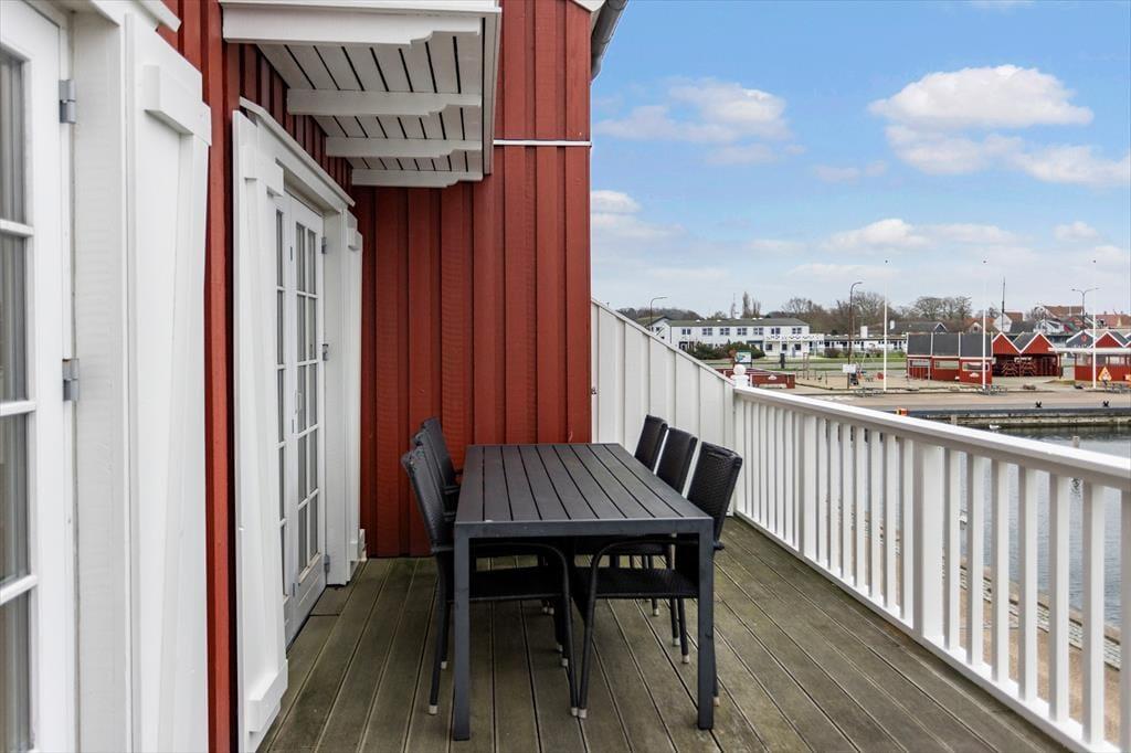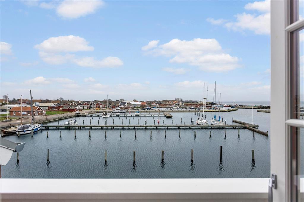 Fra køkken-alrummet er der adgang til en mindre terrasse, hvor du kan nyde morgenkaffen og følge med i havnelivet, når dagen stille vågner. Senere på dagen kan du slå dig ned på den modsatte side af lejligheden og nyde aftensolen med udsigt mod havnen og vandet. Lejlighedens placering mellem havn og natur giver en særlig stemning, hvor du både mærker det rolige tempo fra havet og den levende atmosfære fra lystbådehavnen. De karakteristiske røde og hvide bygninger, opført i 2008, passer smukt ind i omgivelserne og understreger den maritime identitet, som området er kendt for.