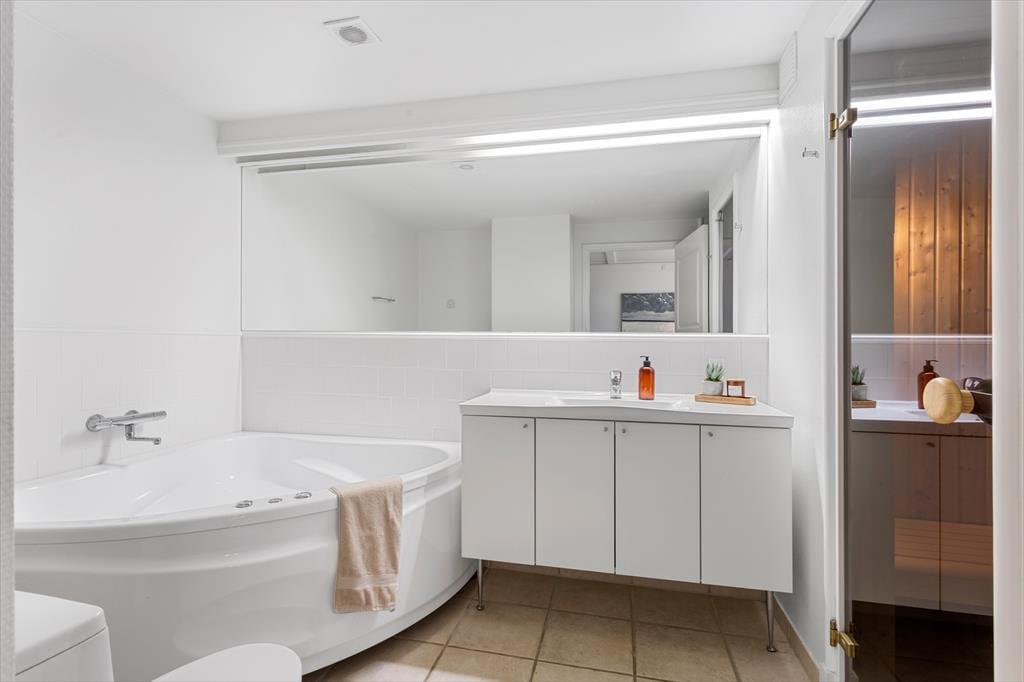 Lejligheden er i to plan og rummer i alt 136 m² med god plads til op til seks personer. På øverste etage finder du et stort og indbydende opholdsrum med stue, som giver plads til hyggelige stunder med familien. Her kan I samles til brætspil, afslapning eller en rolig aften efter dagens oplevelser. Etagen nedenunder byder på et lyst og velindrettet køkken-alrum med brændeovn, der skaber en varm og hyggelig atmosfære – perfekt til feriehygge året rundt. Køkkenet er fuldt udstyret, så det er nemt at tilberede både morgenmad og aftensmad. Lejligheden har to badeværelser, hvoraf det ene er indrettet med både spa og sauna, så der er rig mulighed for afslapning og velvære under opholdet.