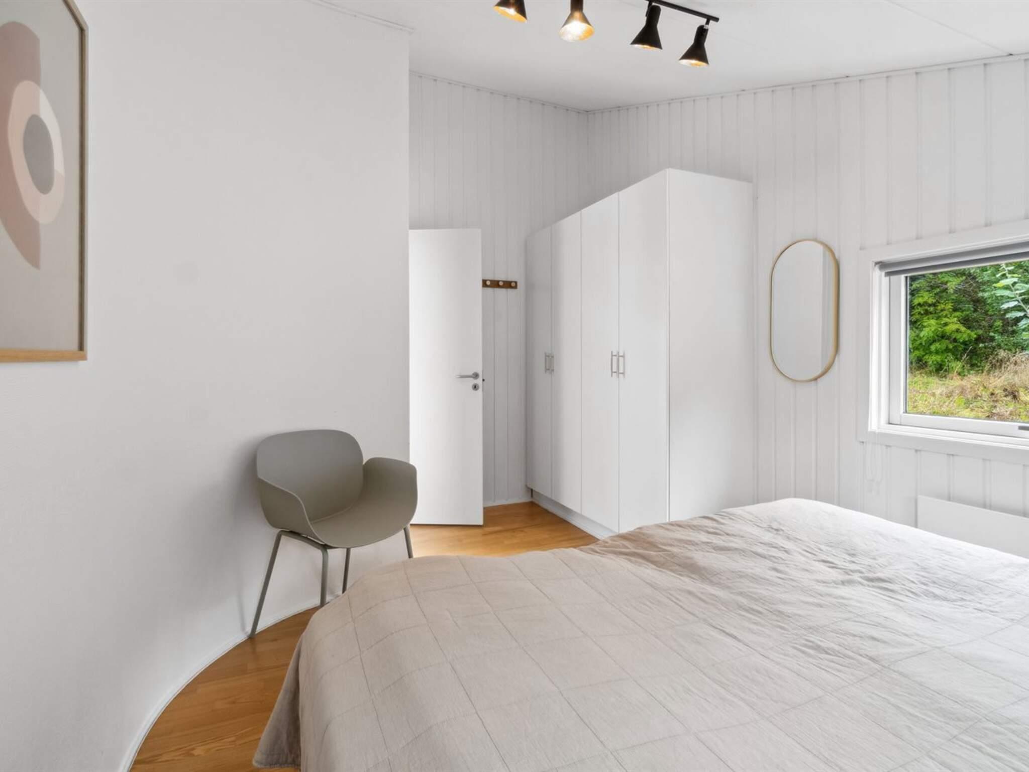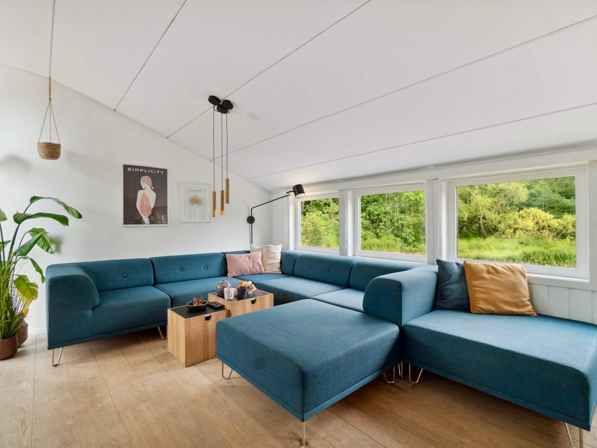 Boligen er på 142 m² og indrettet til op til 8 personer samt et mindre barn. Her er fire gode soveværelser, to badeværelser med bruseniche samt et stort, åbent opholdsrum, hvor køkken, spiseplads og stue er samlet i ét lyst og sammenhængende rum. De lange vinduespartier giver et flot lysindfald og udsigt til både have, sø og pool, hvilket skaber en rolig og indbydende atmosfære.