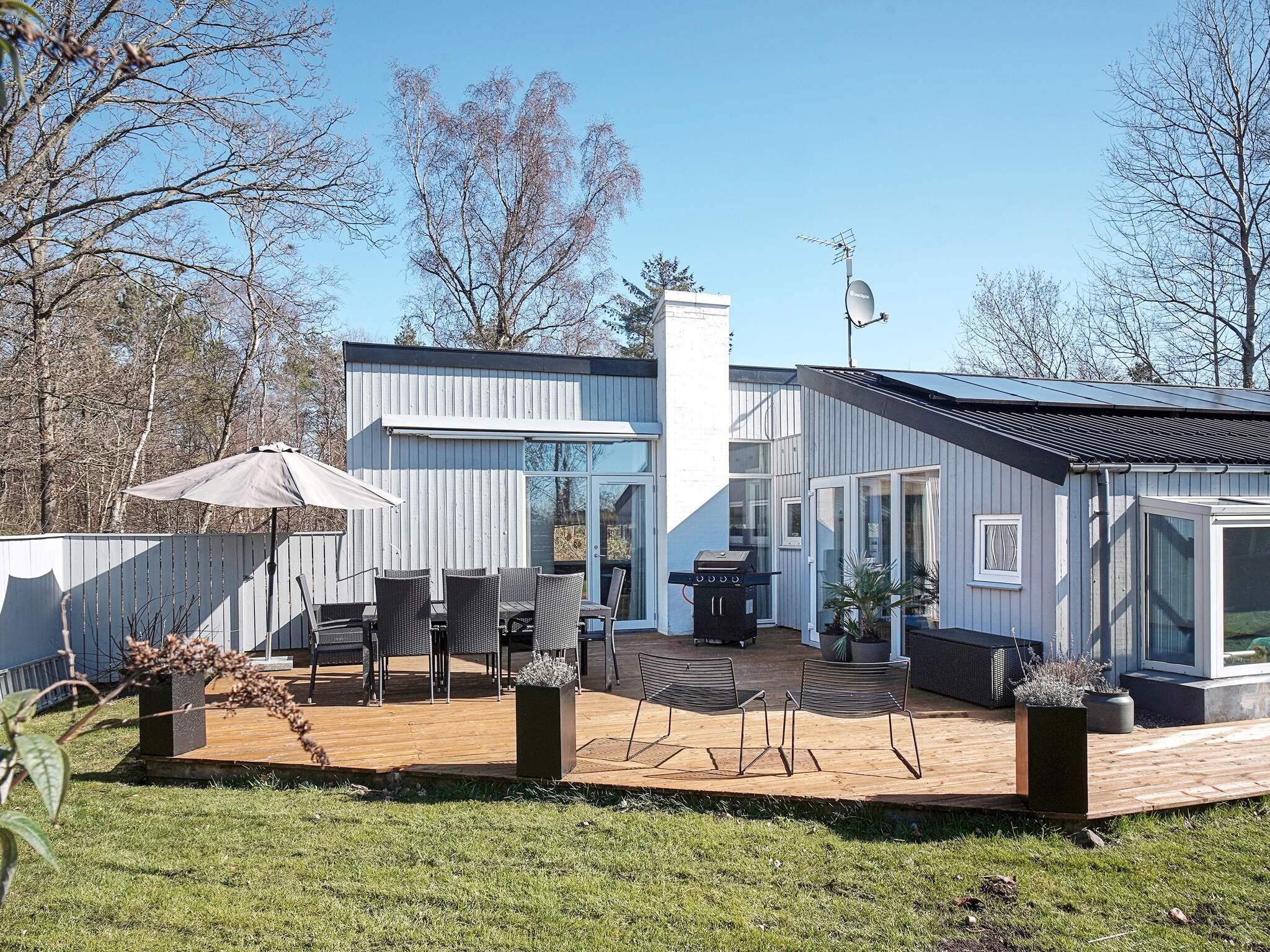 Udelivet er en naturlig forlængelse af huset. Den nye og store træterrasse byder på god plads til både spiseområde, loungemøbler, solsenge og grill. Udendørsbruseren gør det nemt at skylle sand og saltvand af efter en tur til stranden eller poolen. Haven er aflukket, hvilket skaber trygge rammer for børn.