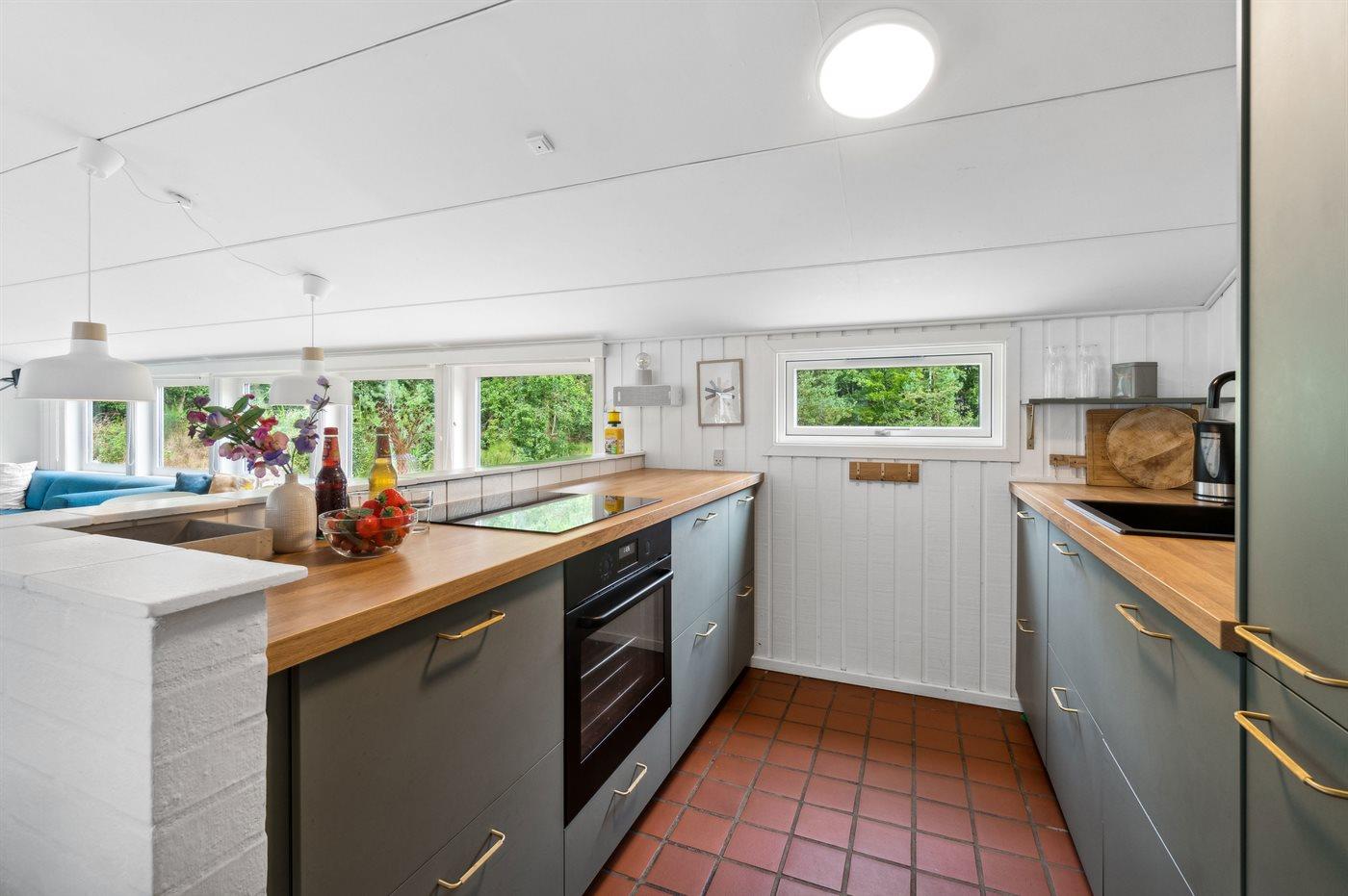 Køkkenet er udstyret med 1 køleskab. Der er 4 induktionskogeplader, varmluftovn, mikrobølgeovn samt opvaskemaskine.