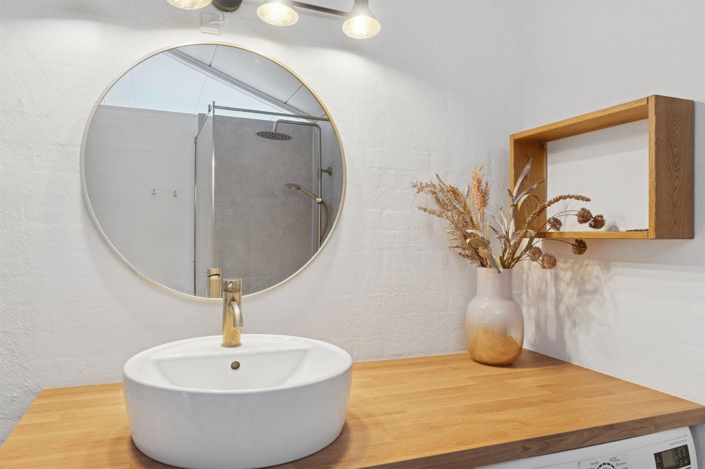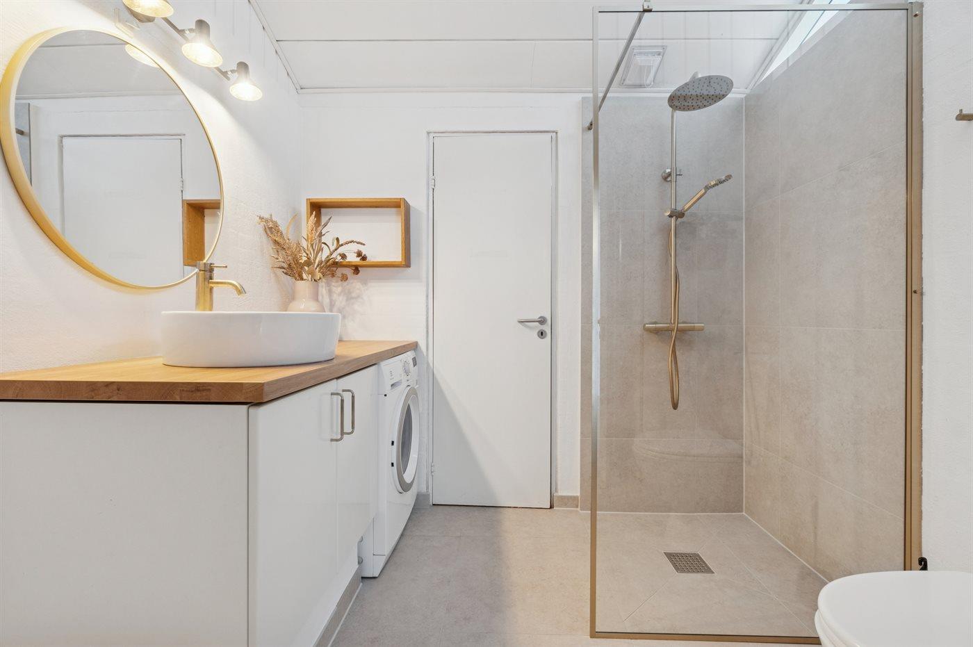 Der er 2 badeværelser med bruseniche og 2 toiletter. Der er gulvvarme på 2 badeværelser. I saunaen er der mulighed for afslapning.