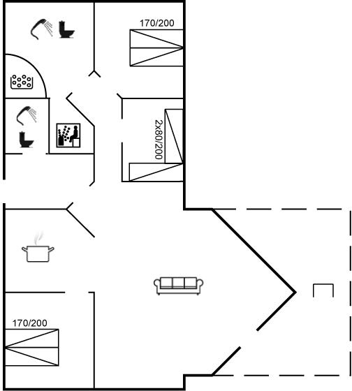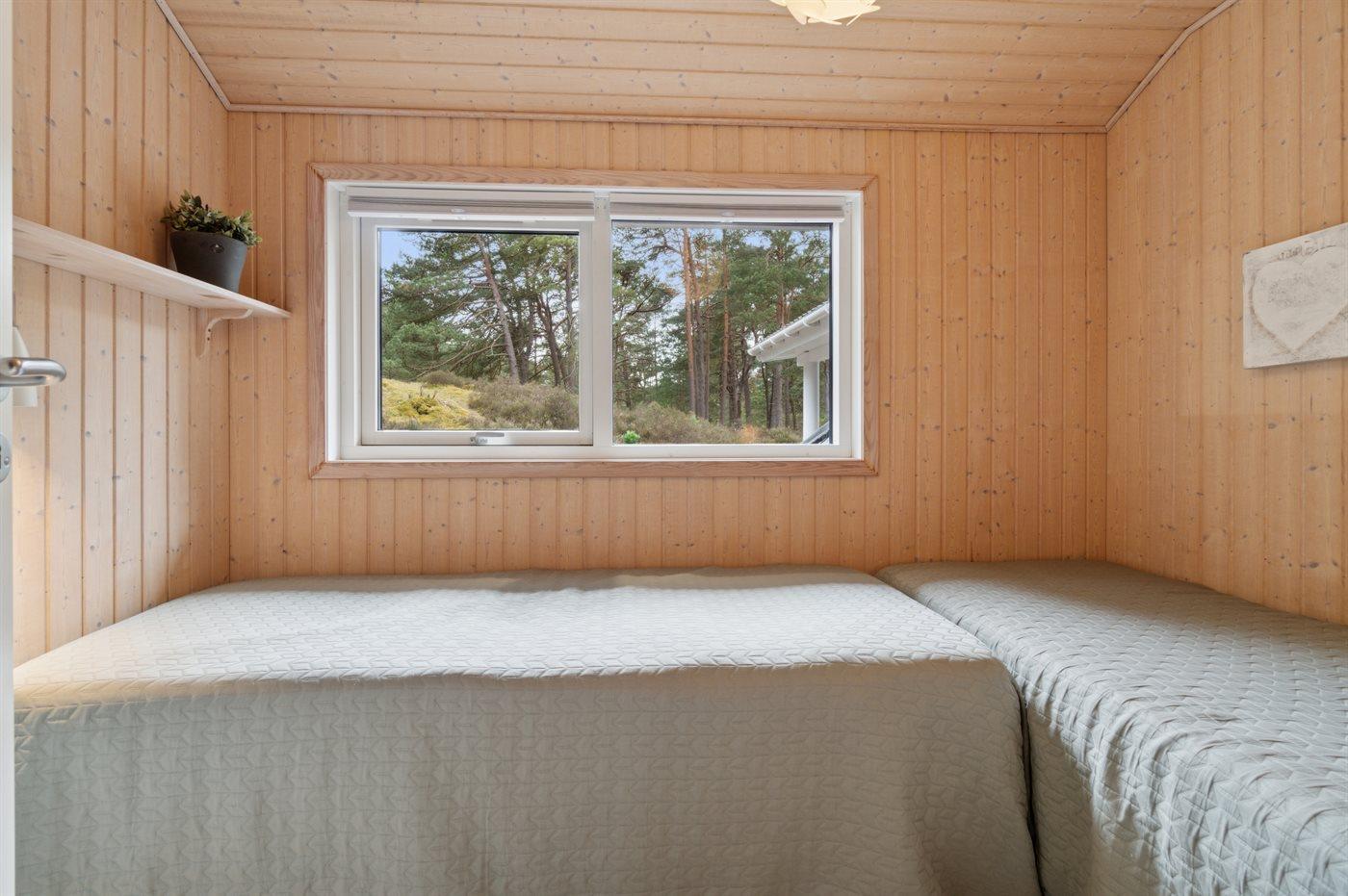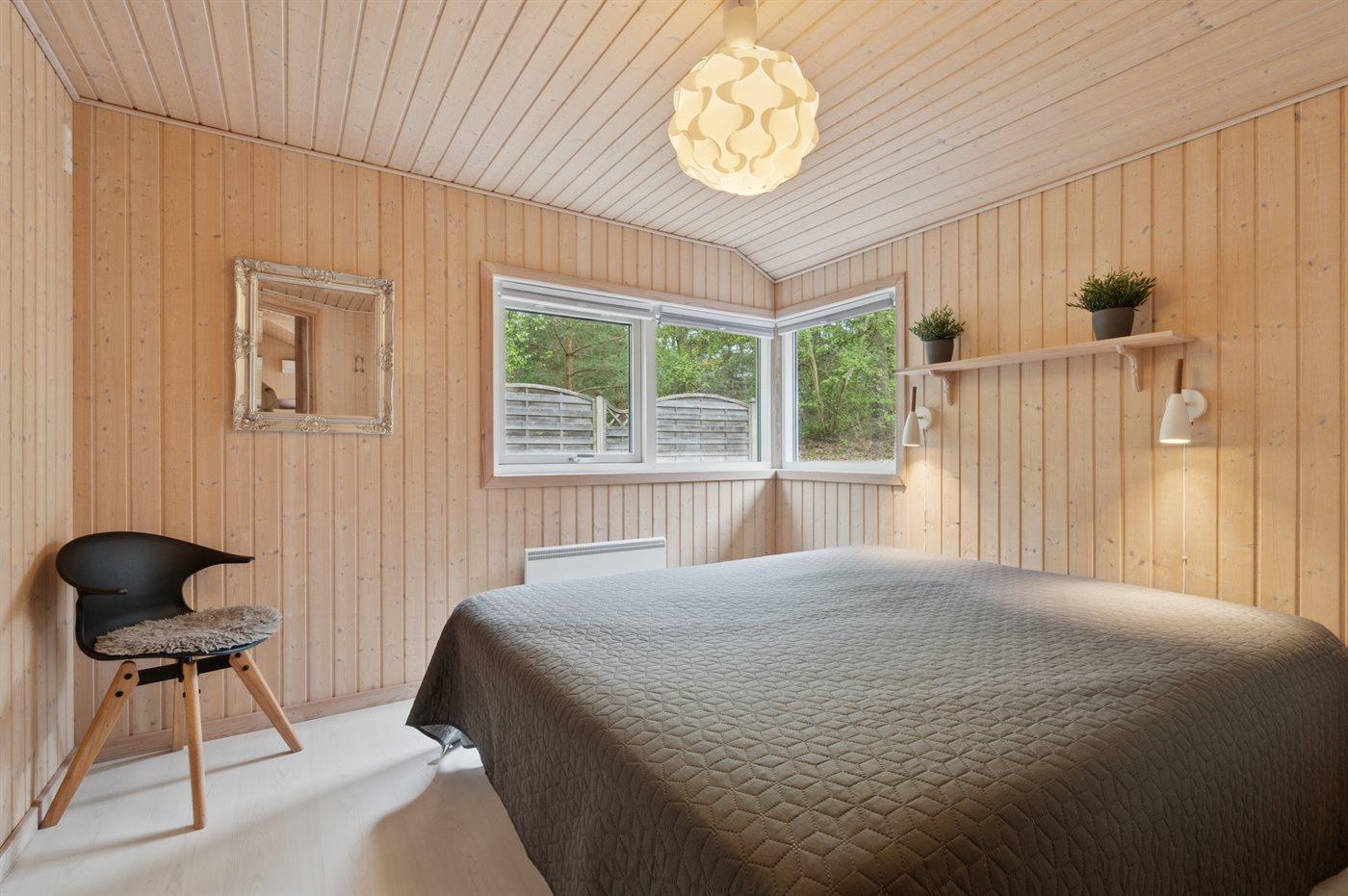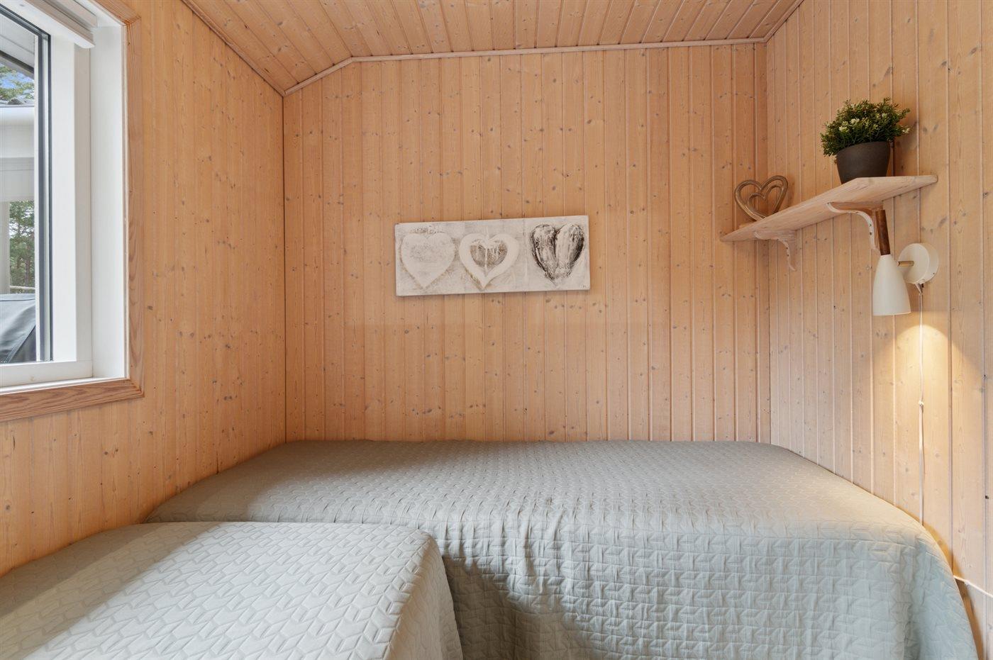 Der er i alt 3 soveværelser. Sovepladserne fordeler sig på: 4 sovepladser i dobbeltsenge. 2 sovepladser i enkeltsenge. 2 sovepladser på madrasser. 2 af disse sovepladser befinder sig på husets hems.