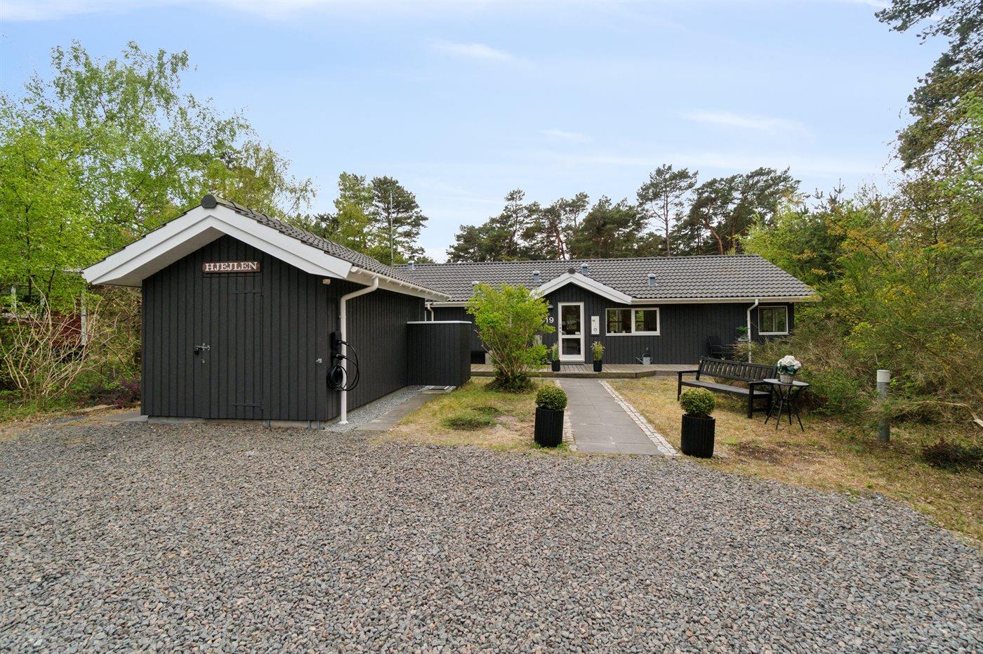 Ferieboligen er beliggende på en 1260 m² stor naturgrund. Der er 75 m til havet. Nærmeste forretning er beliggende i en afstand af 900 m. Til ferieboligen hører 25 m² terrasseareal. Desuden er der 18 m² overdækket terrasse. Der er redskabsrum. Gynge. Afskærmet udendørs bruser. Grill til rådighed. Der er installeret stik til opladning af elbil. Type 2 stik. Parkering ved ferieboligen.