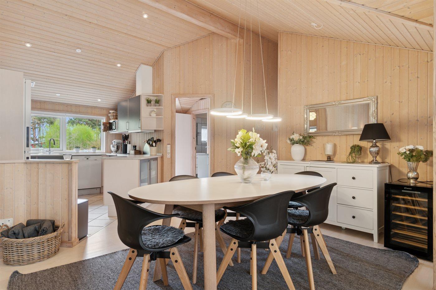 Sommerhuset egner sig til 8 personer. 2 af sovepladserne er kun egnet til større børn (4-11 år). Ferieboligen er på 105 m² og er bygget i 2003. Det er ikke tilladt at medbringe husdyr. Ferieboligen er udstyret med energibesparende varmepumpe. Ferieboligen har vaskemaskine. Tørretumbler. Frysekapacitet på 50 liter. Der er desuden brændeovn.
