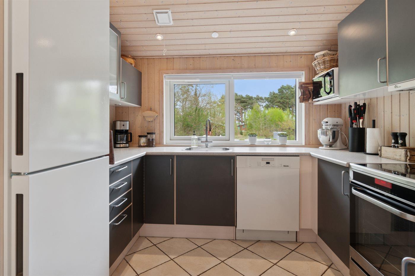 Køkkenet er udstyret med 1 køleskab. Der er 4 induktionskogeplader, varmluftovn, mikrobølgeovn samt opvaskemaskine Der er desuden vinkøler og isterningmaskine til rådighed.