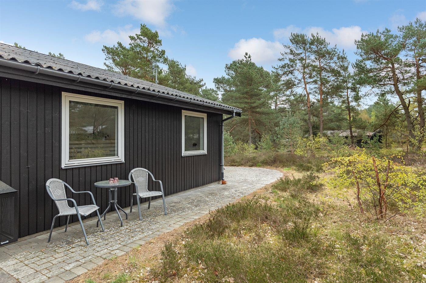 Ferieboligen er beliggende på en 1500 m² stor naturgrund. Der er 150 m til havet. Nærmeste forretning er beliggende i en afstand af 900 m. Der er en golfbane i en afstand af 7000 m. Til ferieboligen hører 95 m² terrasseareal. Desuden er der 14 m² overdækket terrasse. Der er redskabsrum. Afskærmet udendørs bruser. Der er installeret stik til opladning af elbil. CEE stik samt omformer til type 2 stik. Med 11 kW ladeeffekt. Parkering ved ferieboligen.