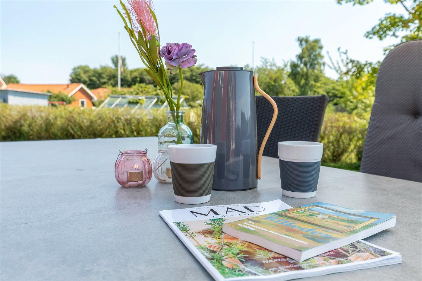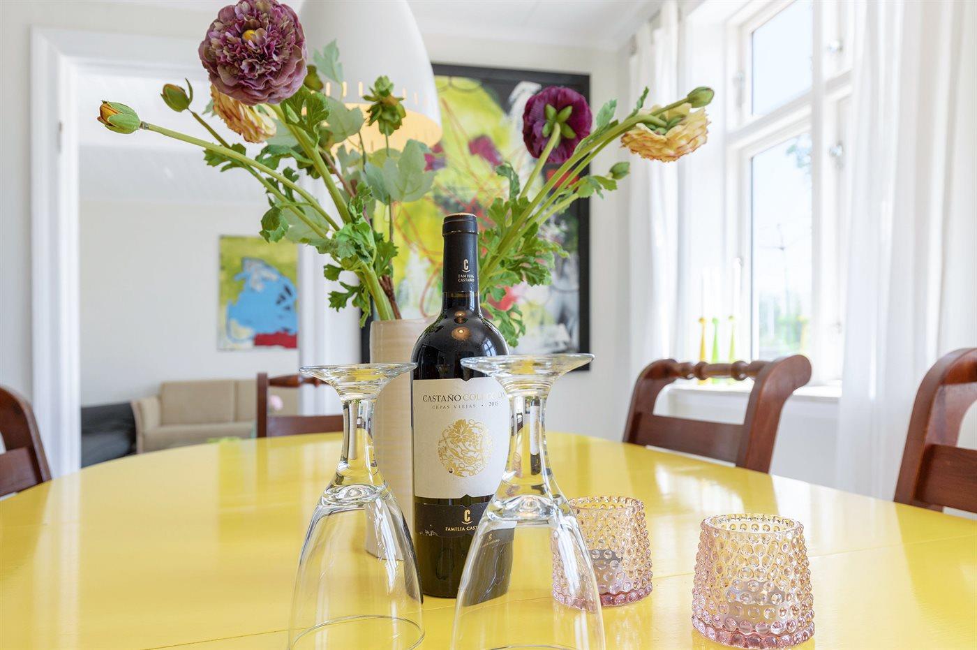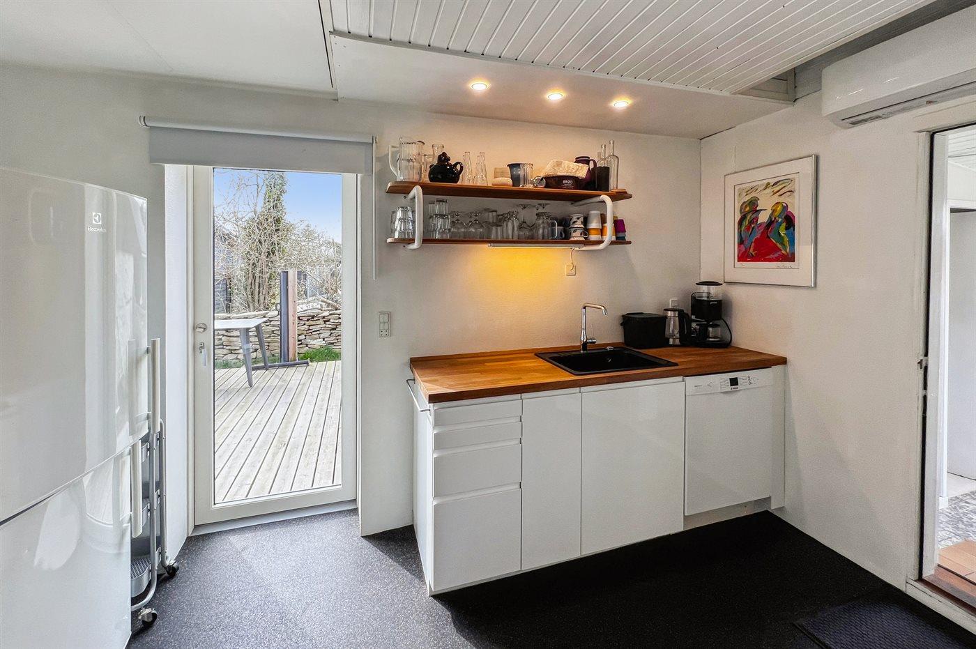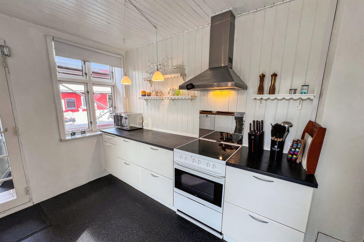 Køkkenet er udstyret med 1 køleskab. Der er 4 keramiske kogeplader, varmluftovn, mikrobølgeovn samt opvaskemaskine.