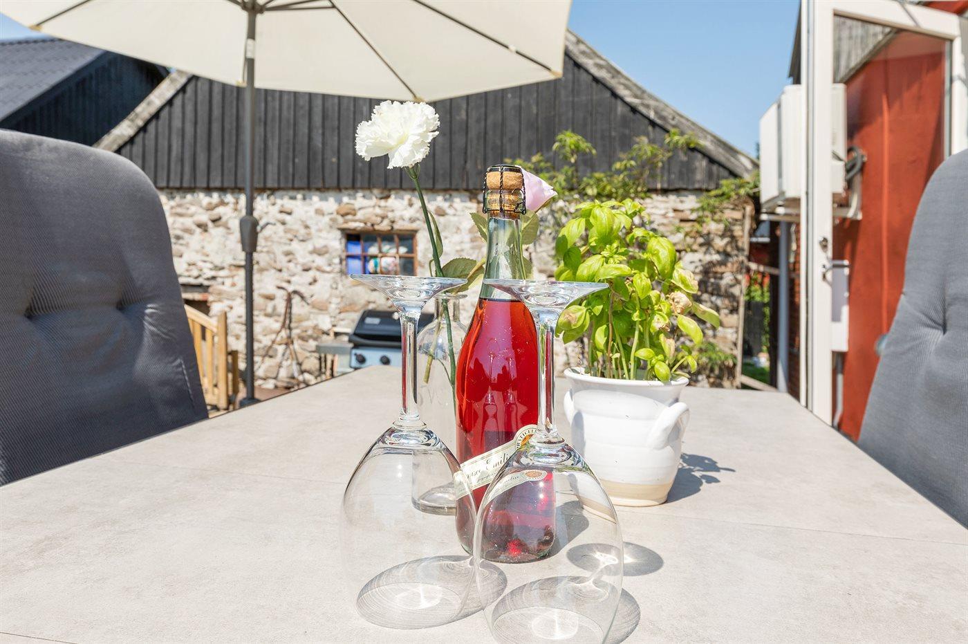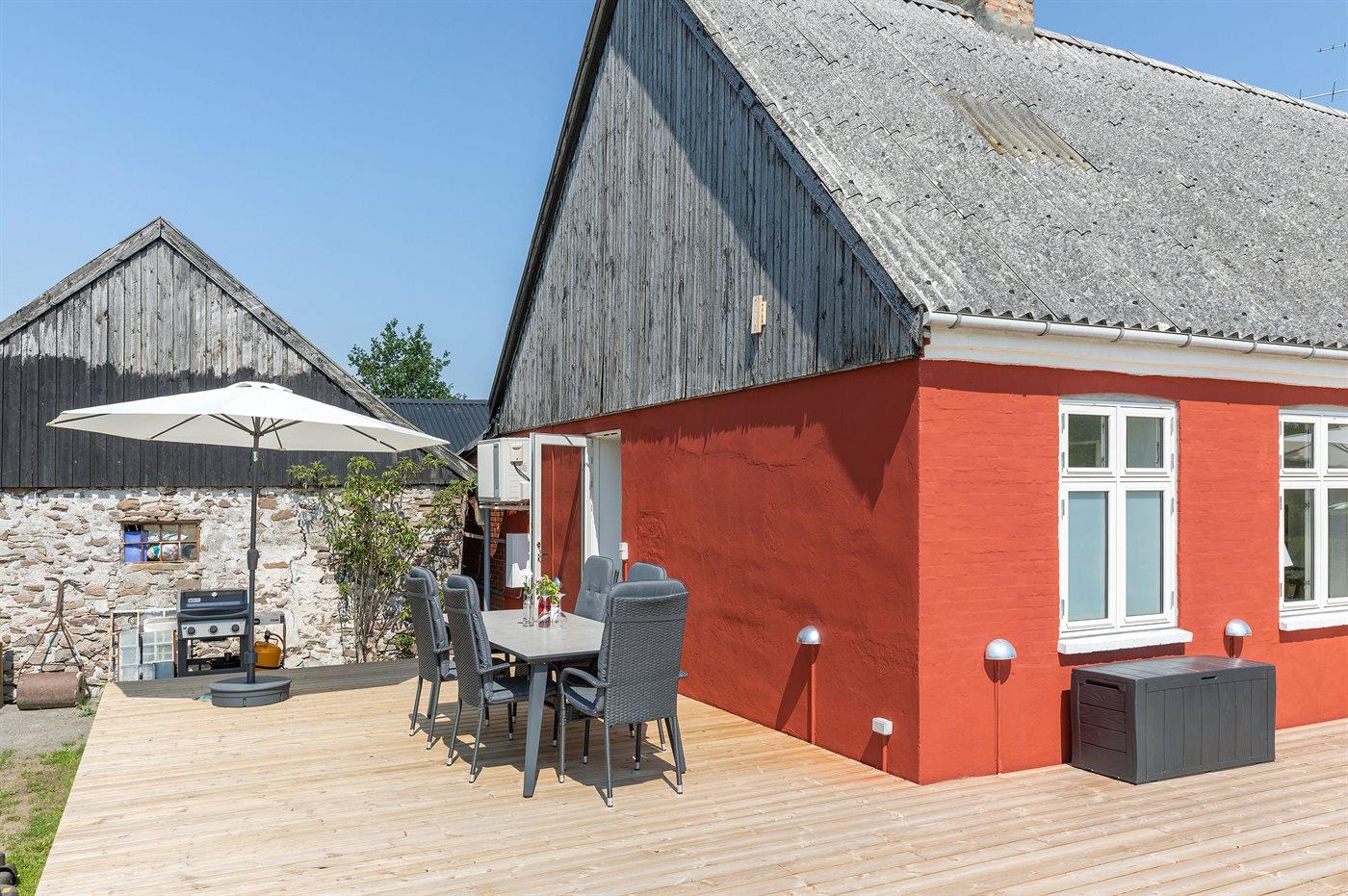 Man får en god fornemmelse af denne lille landbrugsejendom i tidligere tider, når man går over den fælles gårdsplads til det pænt delvis renoverede stuehus, hvor der i 2020 er tilført en fantastisk hævet træterrasse. På grunden er det muligt at leje 3 yderligere ferielejligheder (95-2557, 95-2558 og 95-2564) - alle med separat indhegnet grund.
